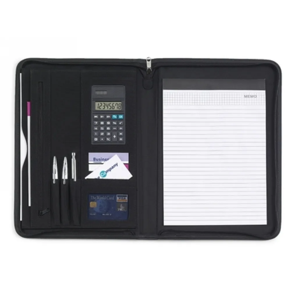 Zipped conference folder approx. A4 with notebook (20 lined sheets) and dual power calculator
