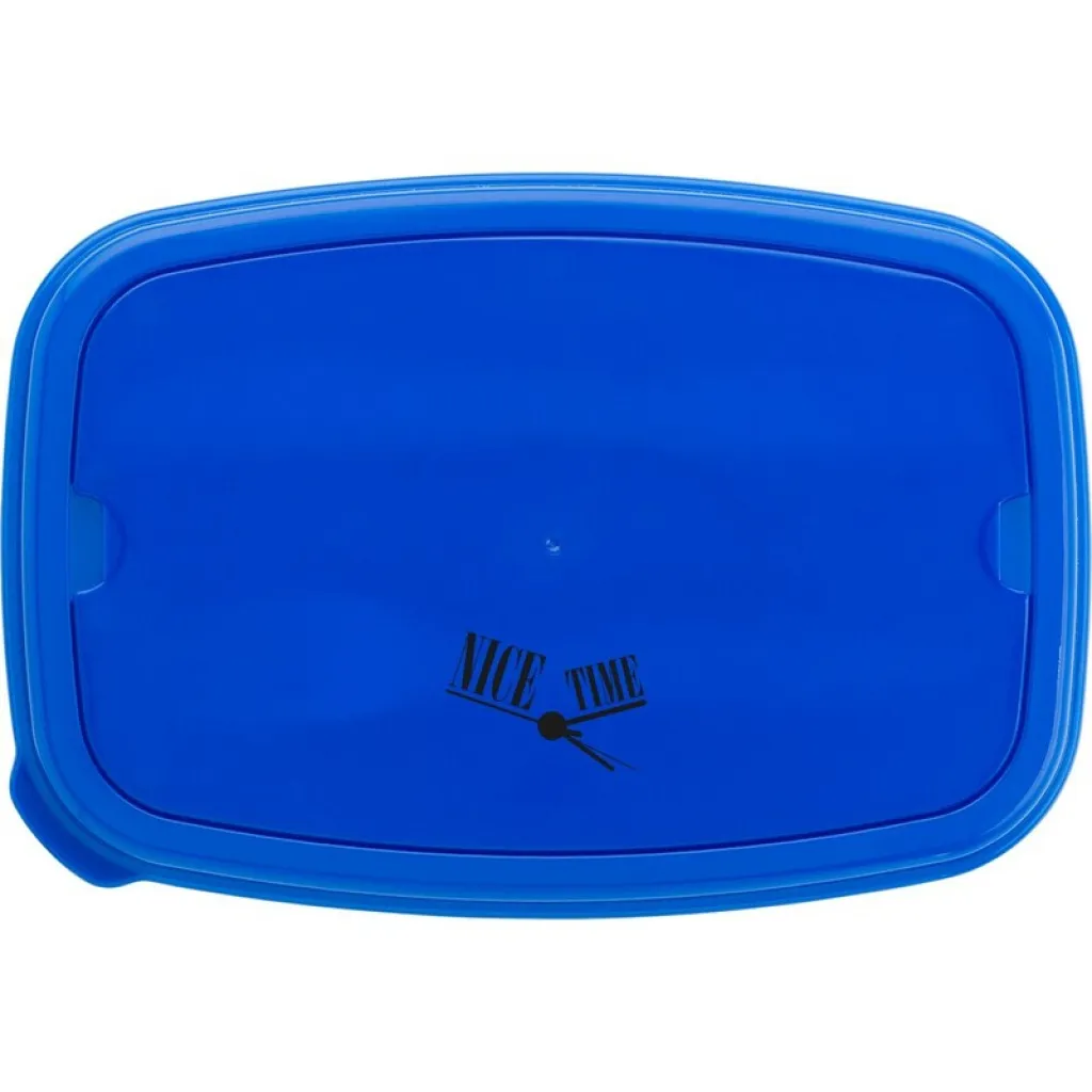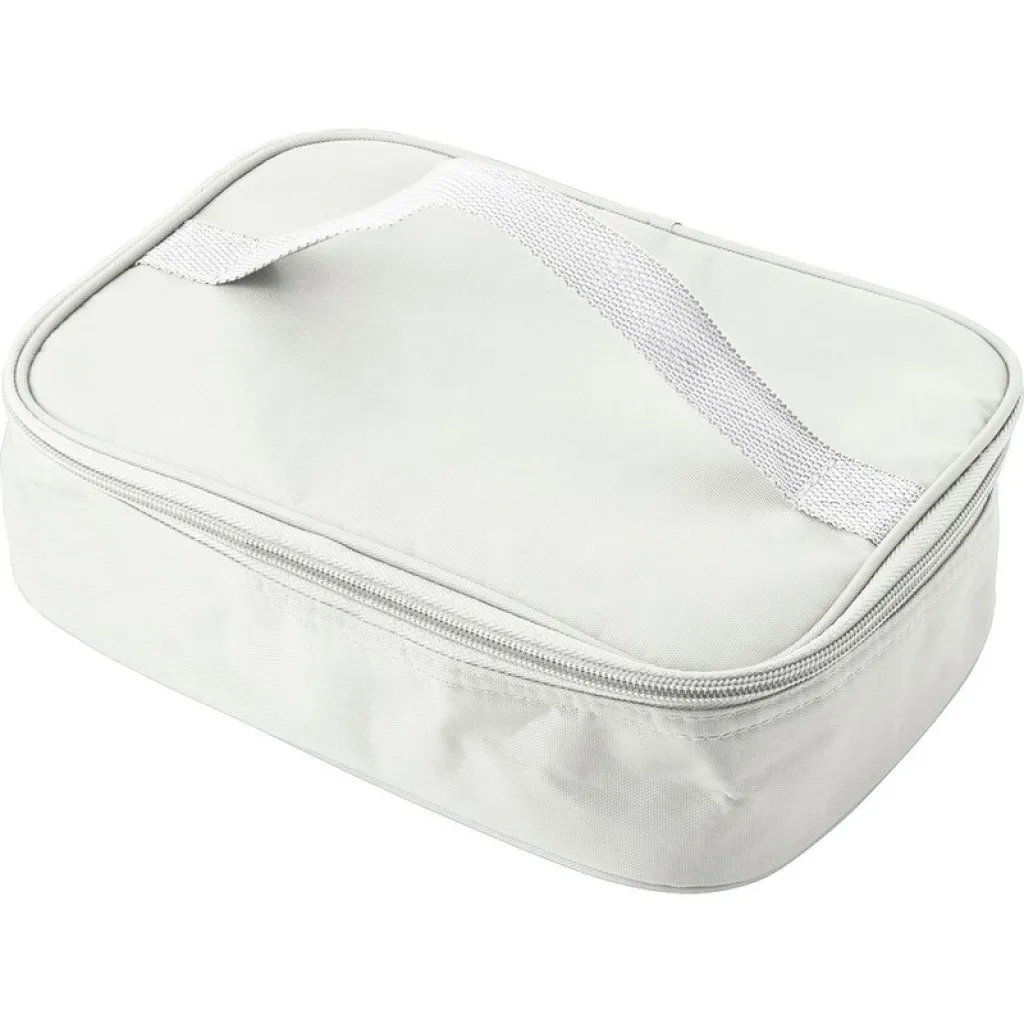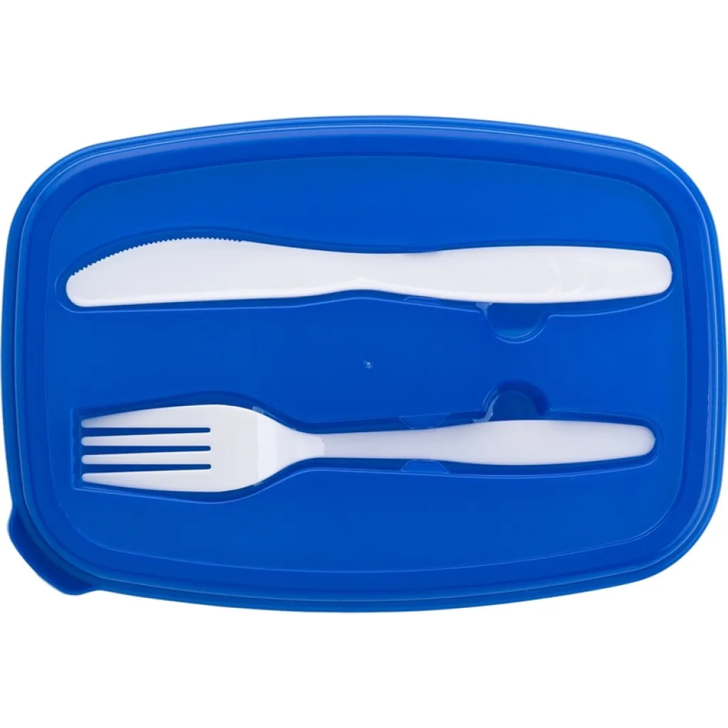 Zipped cooler bag with carry handle, includes lunch box with two compartments 1,2 L, knife and fork attached on matching colour lid