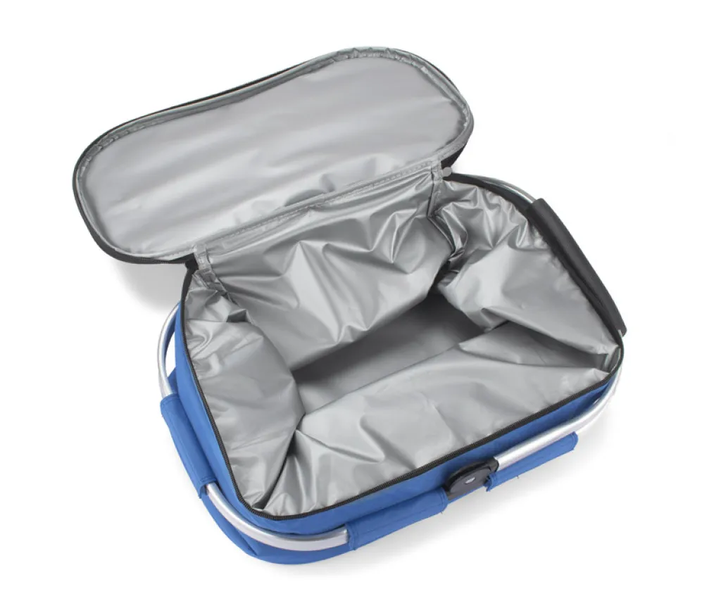 The BIN thermal basket is perfect for storing food products while traveling or at a picnic. Internal insulation made of EPE helps to keep the temperature for a longer time. The basket can be folded flat, so it takes up little space. Cmfortable handle ensures pleasant use.