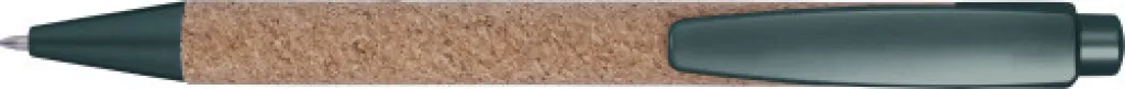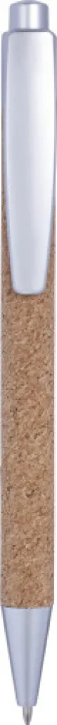 Cork ballpen with plastic tip, clip and top. Blue ink.