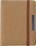 Cork conference folder, with a notepad with 25 lined pages, a rubber band over the cover, PU interior, a small mesh pocket for business cards, a larger pocket, a 20 sheet note pad and an elasticated pen loop (excluding pen).