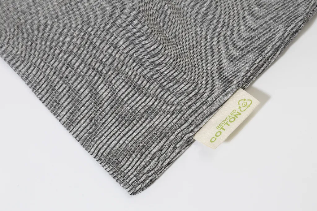 Reusable, recycled cotton shopping bag with long handles. 100% recycled cotton, 120 g/m².