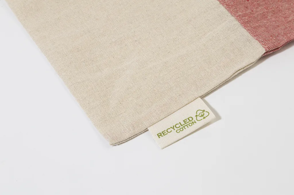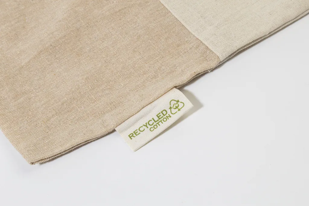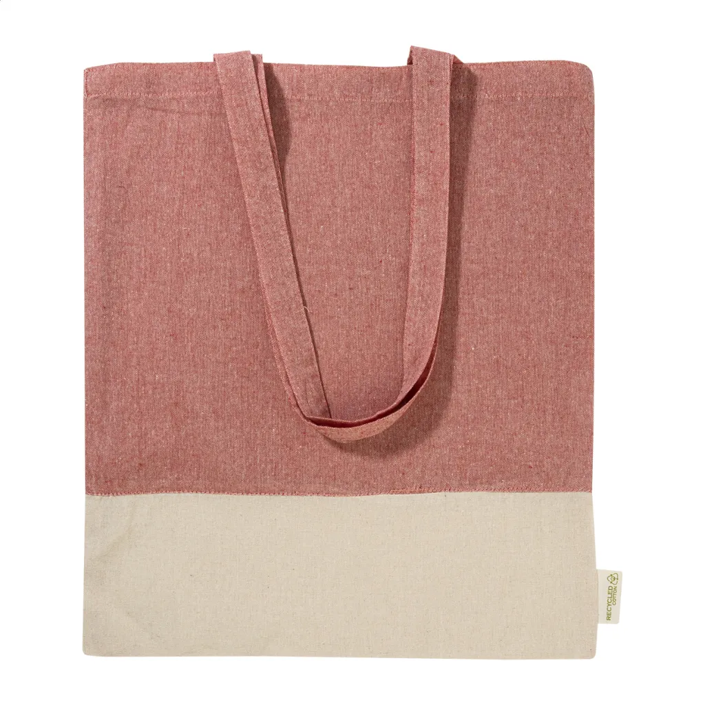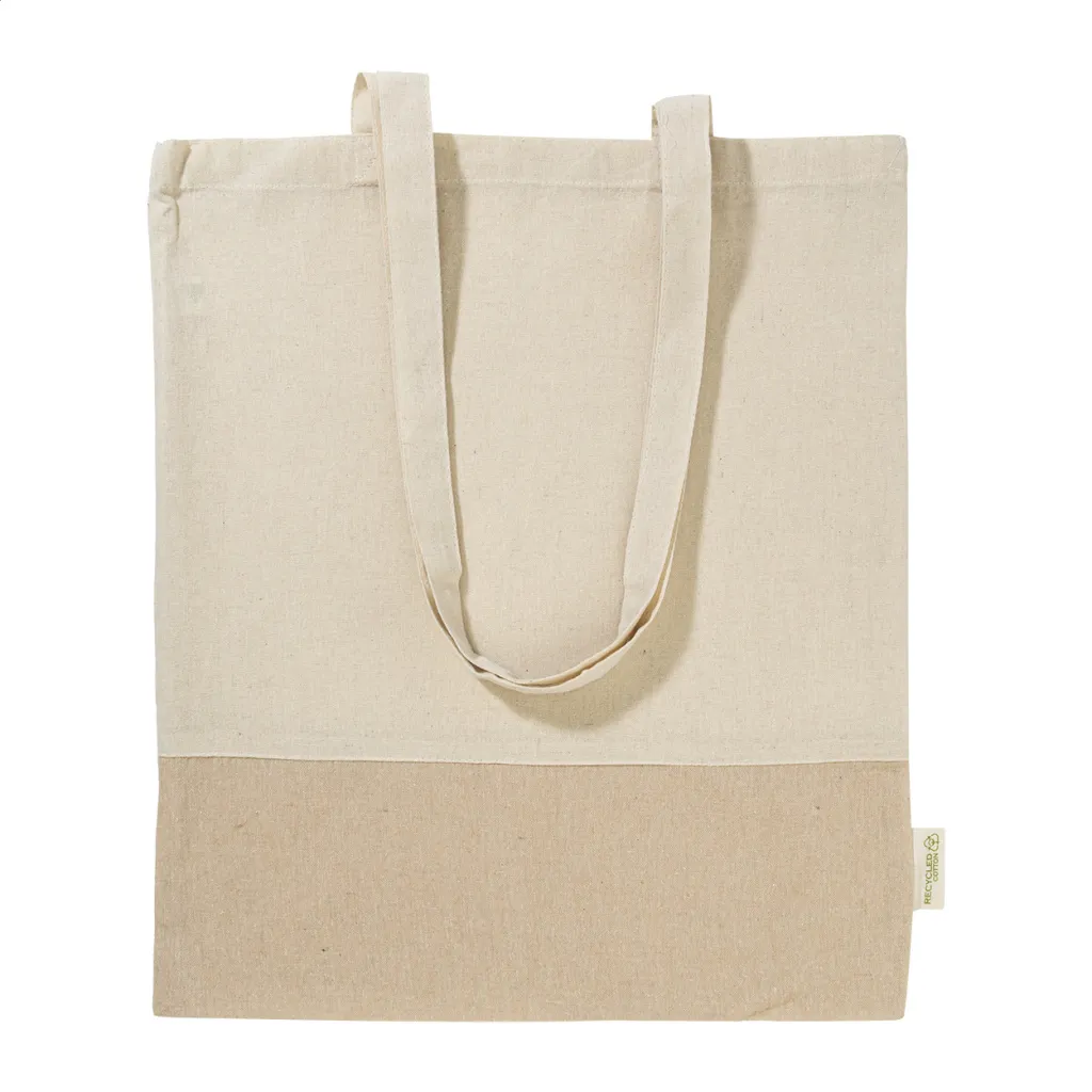 Two-tone recycled cotton shopping bag with long handles and distinctive recycled cotton label. 100% recycled cotton, 120 g/m².