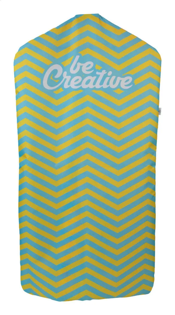 Custom made, zipped garment bag in 190T RPET polyester. With all over sublimation printed graphics and distinctive RPET label. MOQ: 25 pcs.