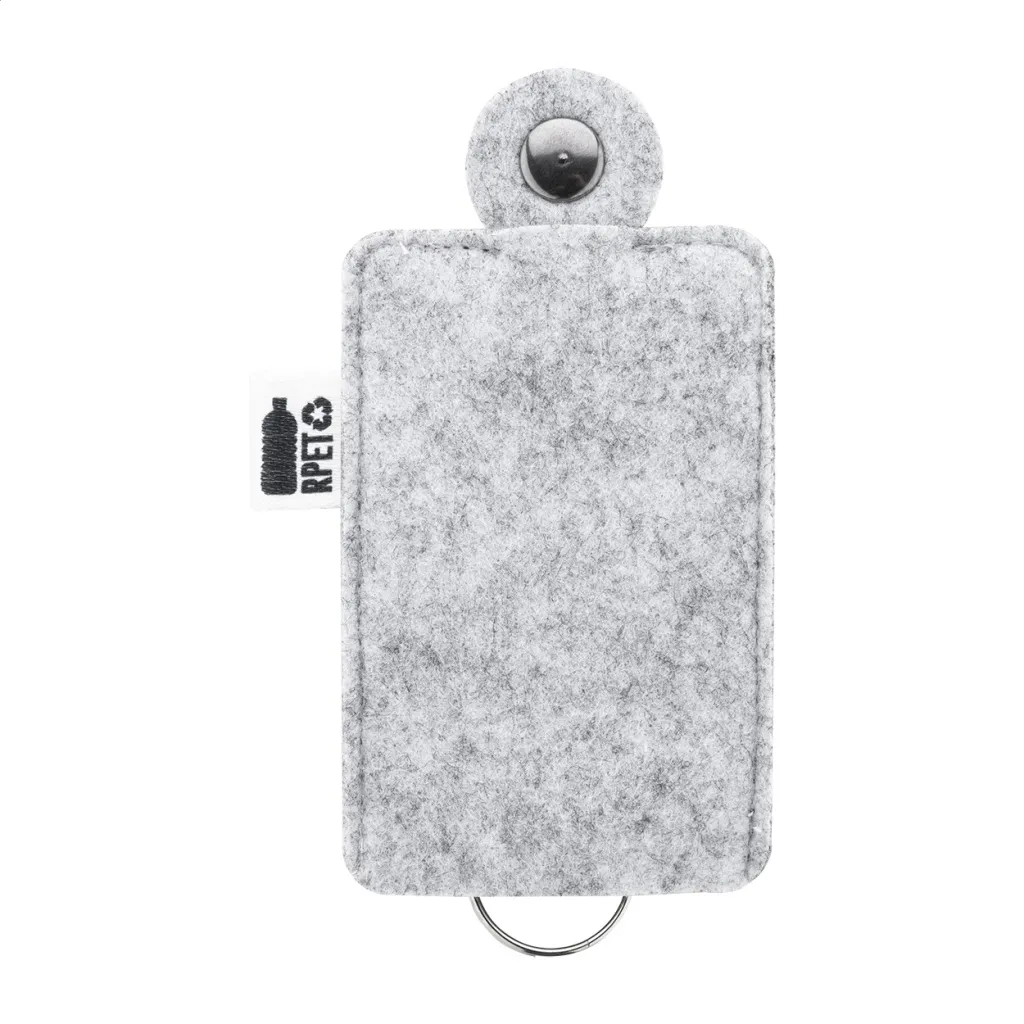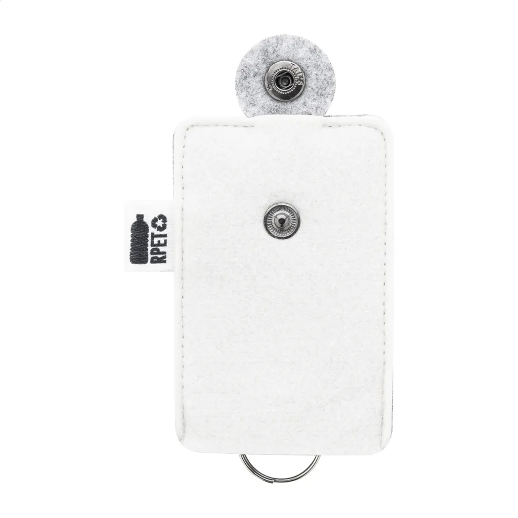 Custom made, RPET felt keyring pouch with full colour printed front side. With distinctive RPET label. Price includes sublimation printing. MOQ: 100 pcs.
