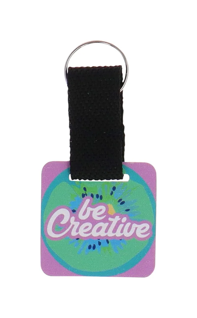 Birch plywood keyring with polyester strap and full colour printing. Price includes UV LED printing on one side. MOQ: 200 pcs.