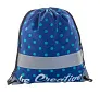 Custom made drawstring bag with reflective tape and reinforced corners, 190T polyester. With all over sublimation printed graphics. MOQ: 50 pcs.