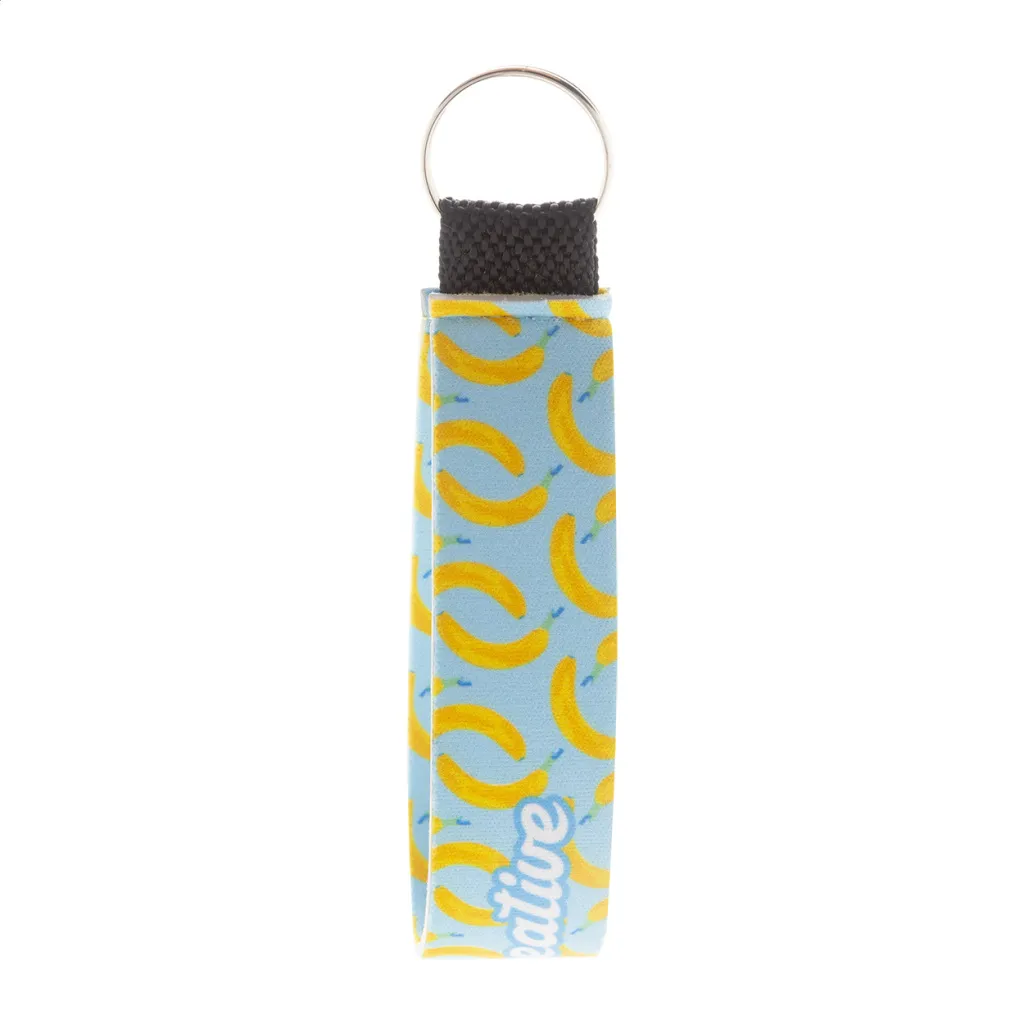 Custom made, RPET neoprene keyring with all over full colour print. Price includes sublimation printing. MOQ: 100 pcs.