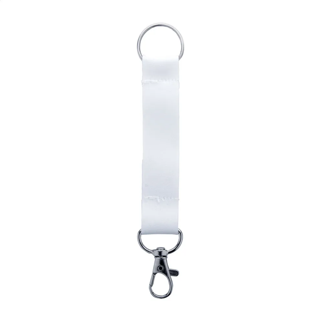 Custom made, RPET polyester mini keyring with sublimation printed graphics on both sides. With metal carabiner and ring. MOQ: 100 pcs.