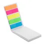 Custom made, paper covered sticky notepad. Includes 50 sheets of recycled paper sticky notes (50×75 mm) and 100 plastic film page markers in 5 assorted colours (44×12 mm). Price includes full colour printed outside cover. MOQ: 100 pcs.