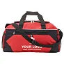 Polyester (600D) sports bag with front zipped pocket and a mesh pocket on both sides. Adjustable shoulder strap.