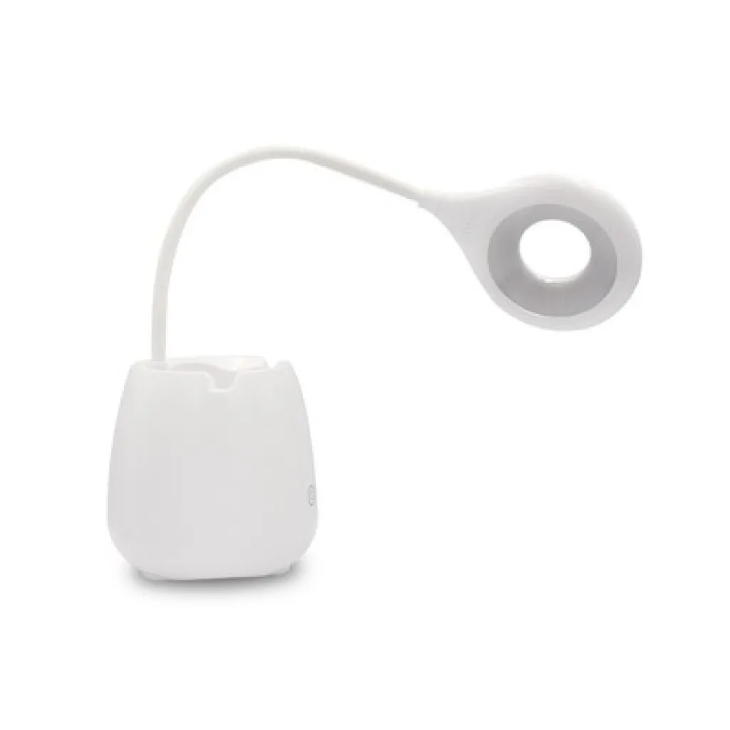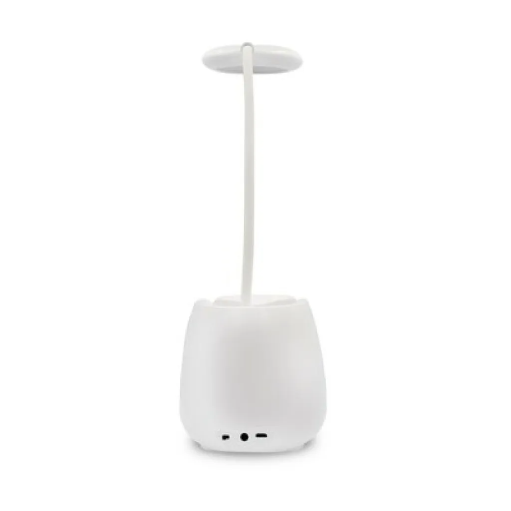 Flexible desk lamp, 3 light modes, 1200 mAh battery, wireless speaker BT 5.0 3W, phone stand, pen holder, AUX input, ON/OFF touch button, micro USB cable included