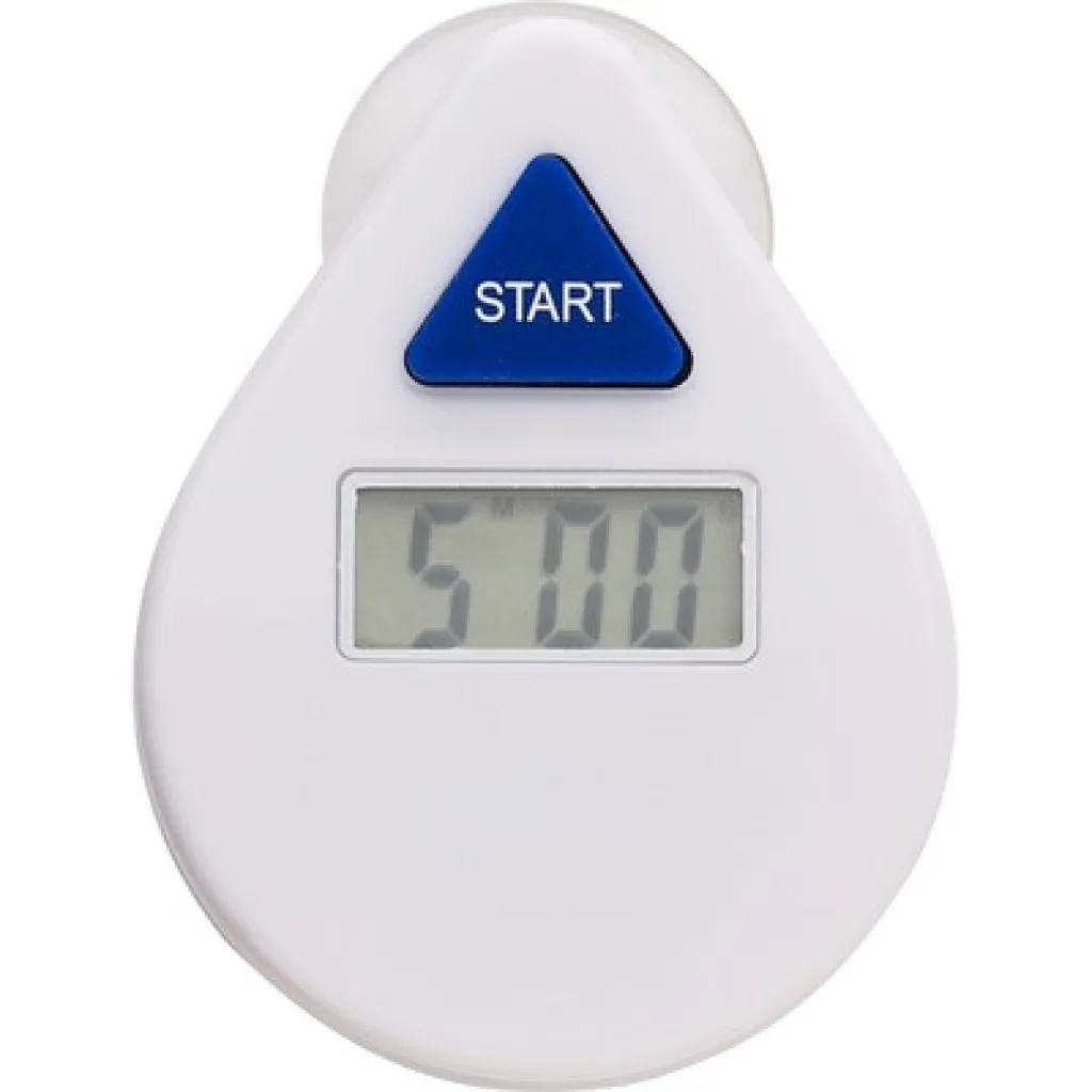 Digital shower coach with suction cup and button, controls shower time and helps save water