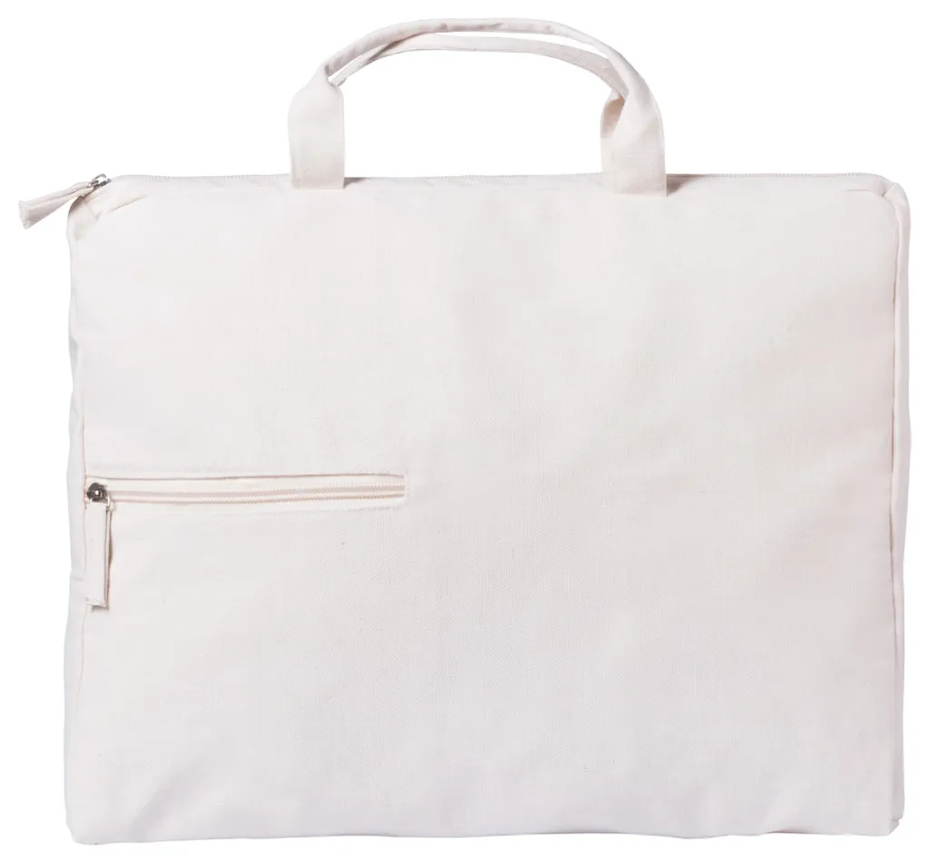 Document bag with zipped front pocket and main compartment, 100% cotton.