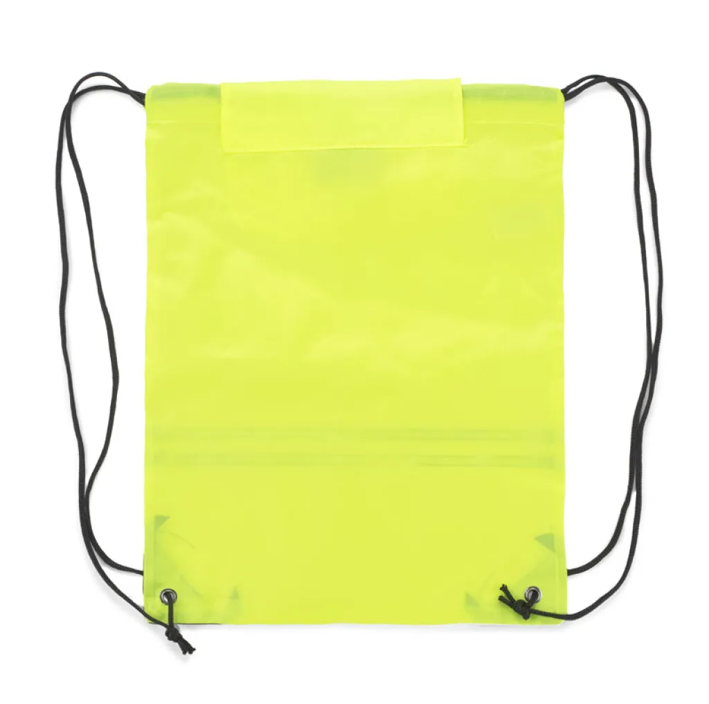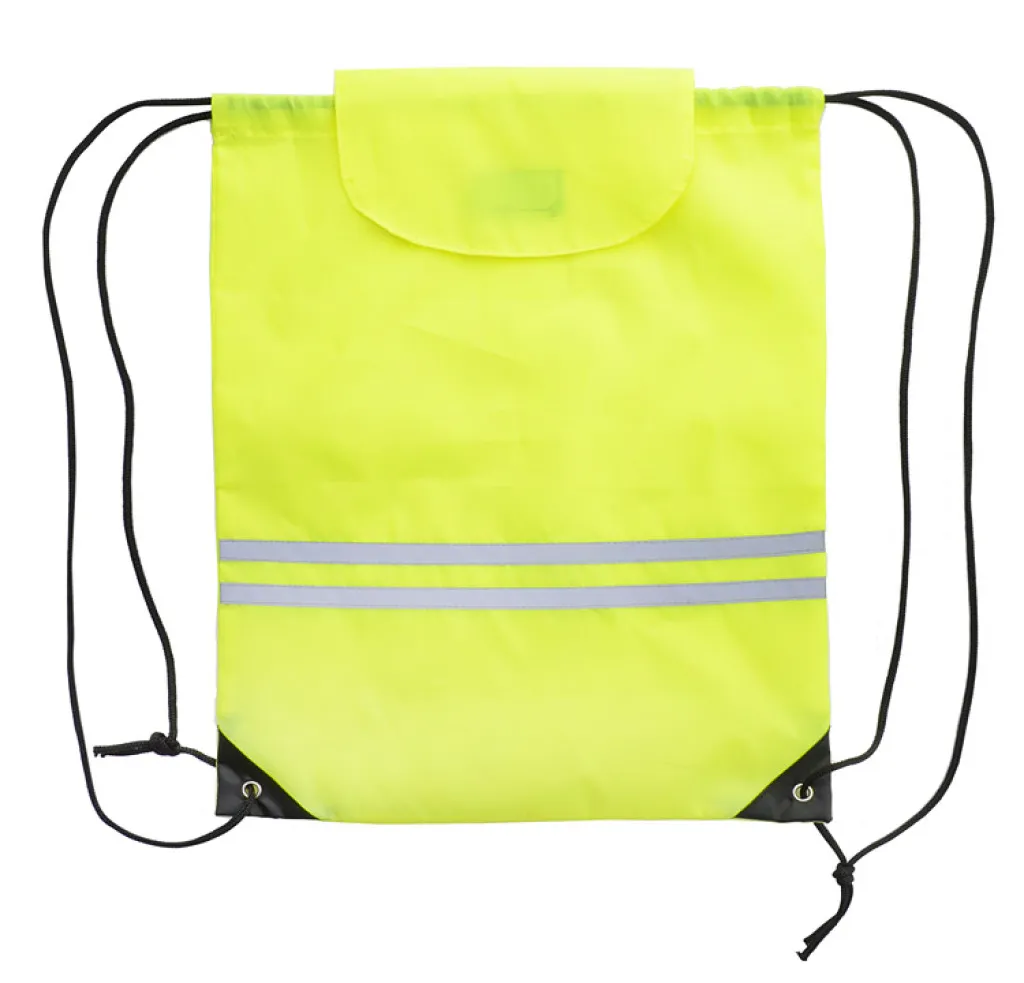 Reflective drawsting bag can be a small rucksack as well. Visible yellow colour, equipped with reflective stripe and strengthened corner parts.