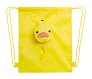 Foldable drawstring bag for children with animal shaped pouch and plastic carabiner, 190T polyester.