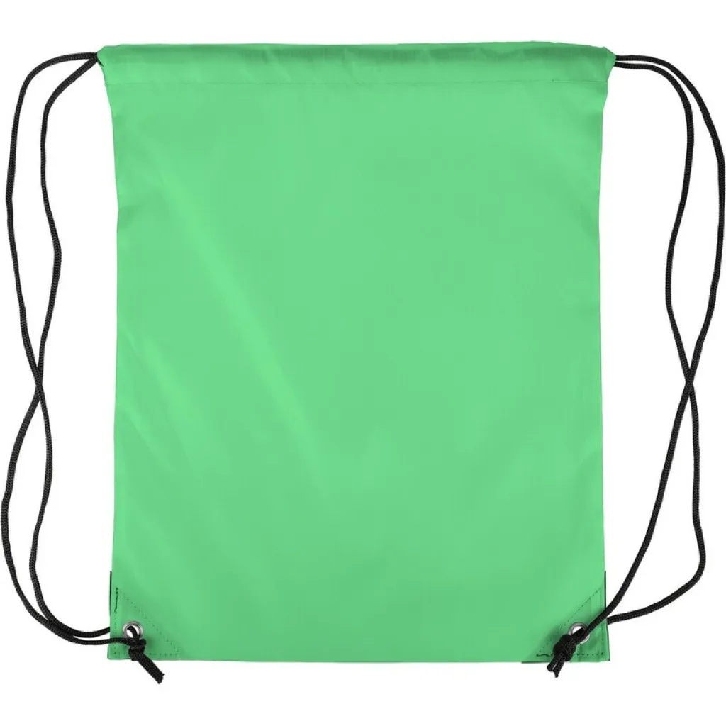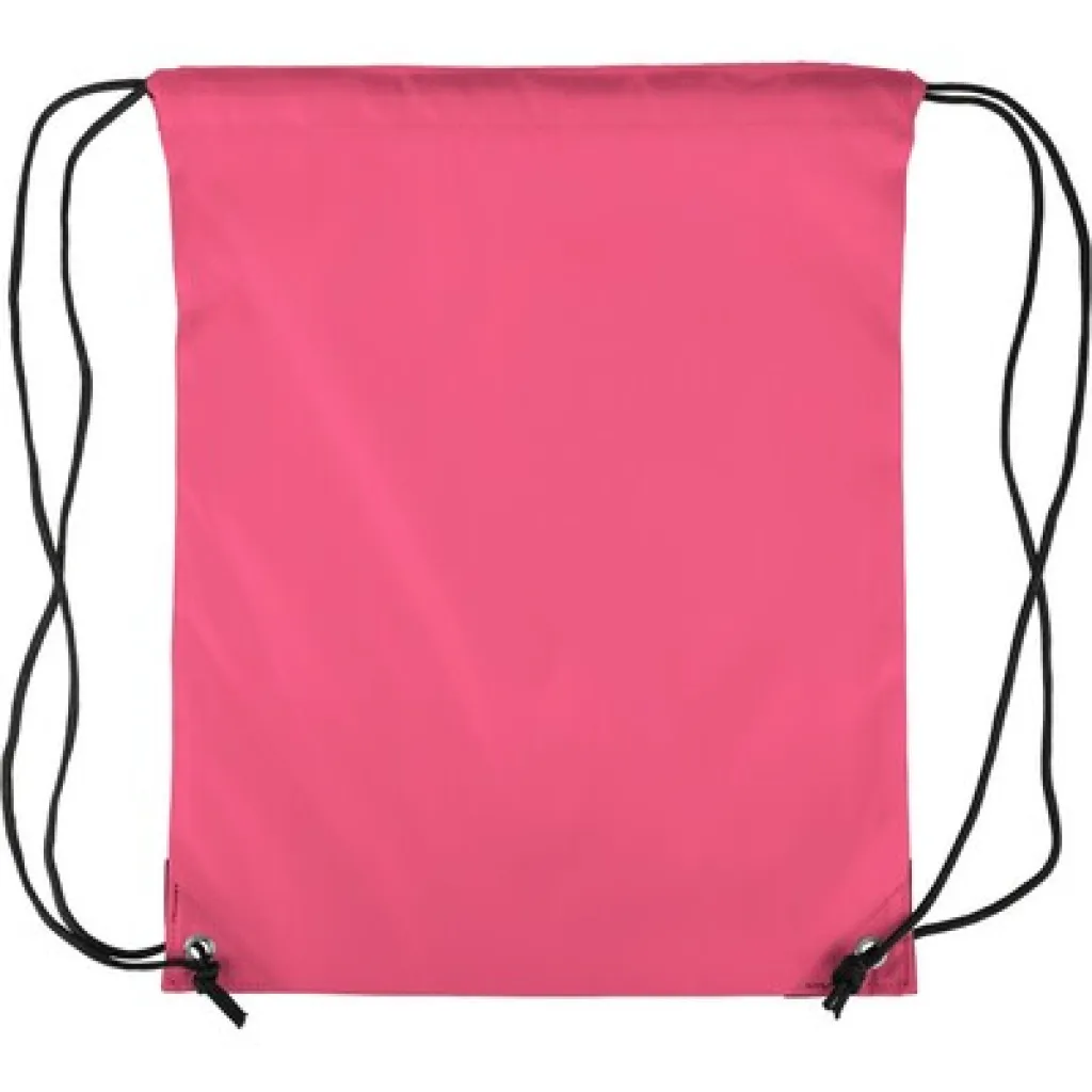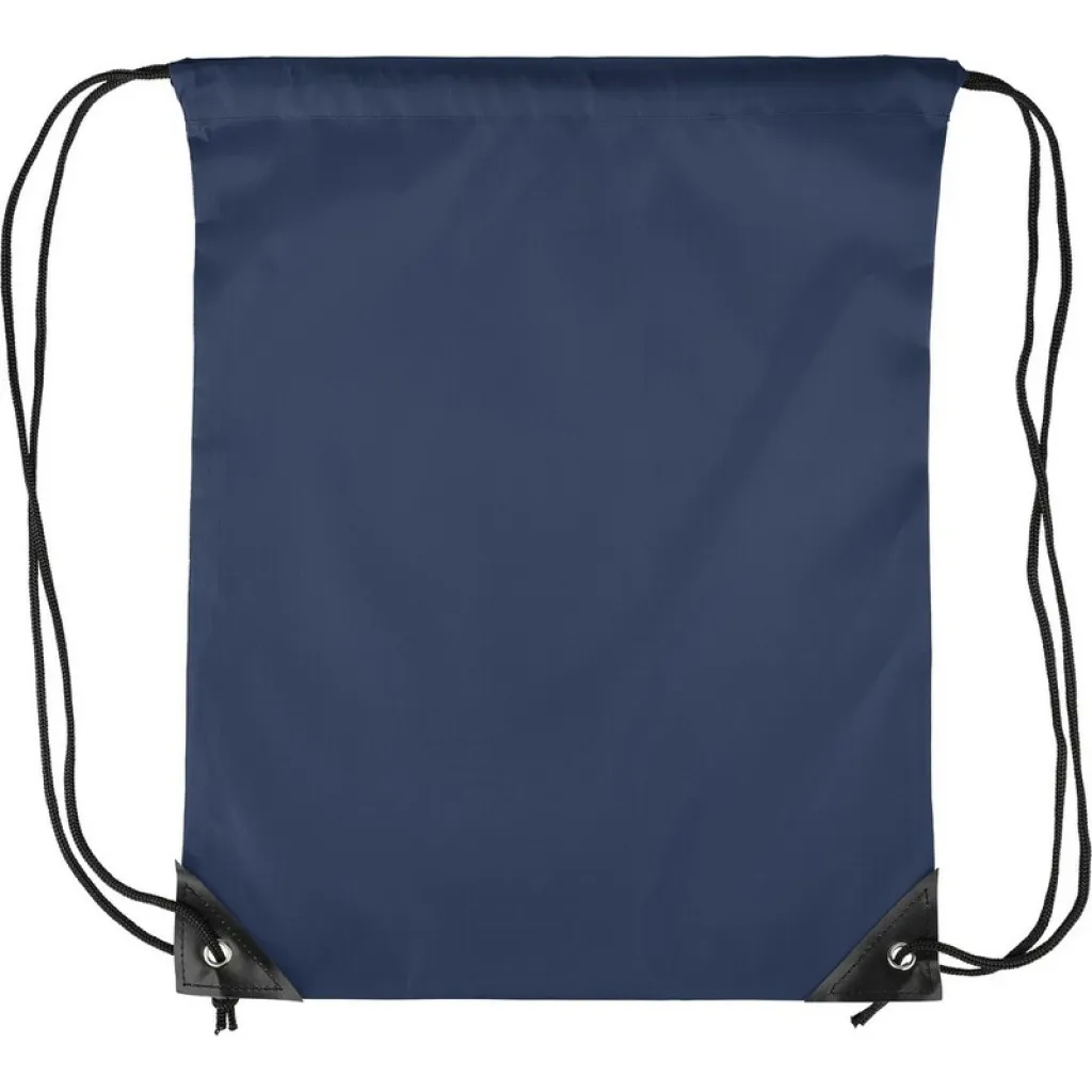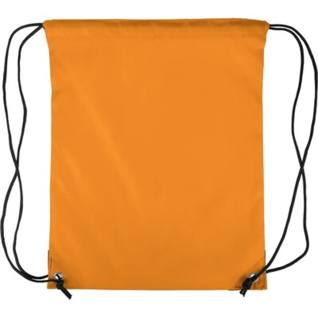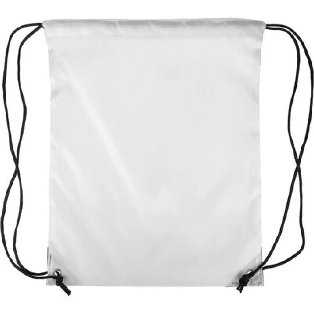 Drawstring bag, black nylon cord on each side, a pull-cord closure, one inner compartment, capacity: 5L, carrying capacity: 7 kg, product made from polyester 210D with two black PU corners on the front and internal sewing