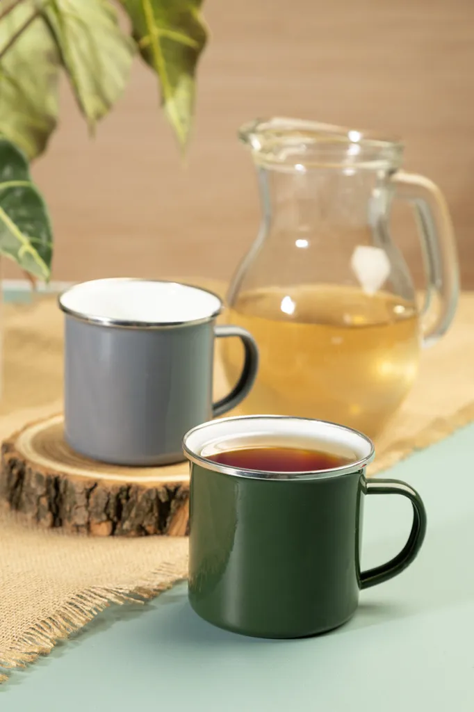Vintage metal enamel mug with stainless steel rim, 300 ml.