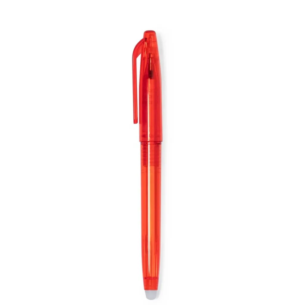 Erasable ball pen, translucent barrel with matching colour cap
