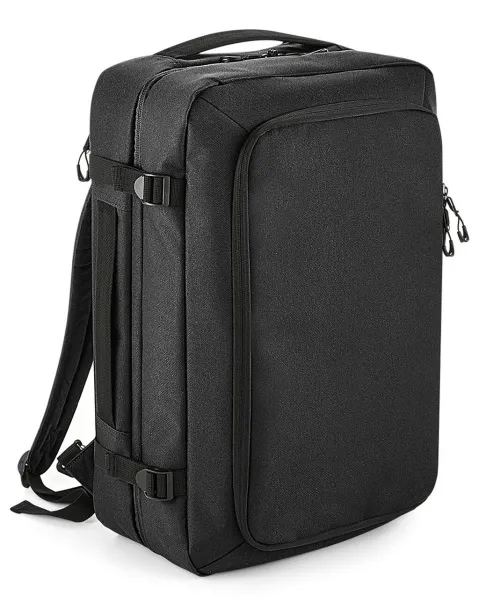 ·100% Polyester (600D) ·Compression straps and padded top and side handles ·Foldaway backpack shoulder straps ·Lockable main compartment zip with quick access zippered top pocket ·Padded laptop sleeve compatible up to 15.6" ·Large zippered front compartment with internal mesh divider ·Zippered internal pocket ·Aircraft cabin compatible - suitable for most airlines ·Can be further customised with BG485 (946.29) Escape Handle Wrap ·TearAway label for ease of rebranding ·Capacity: 40 Litres ·Dimensions: 35 x 51 x 28 cm ·Max. embroidery: 22 tubular hoop ·Max. print area: 22 x 36 cm.
