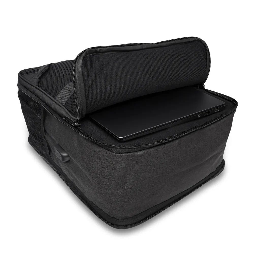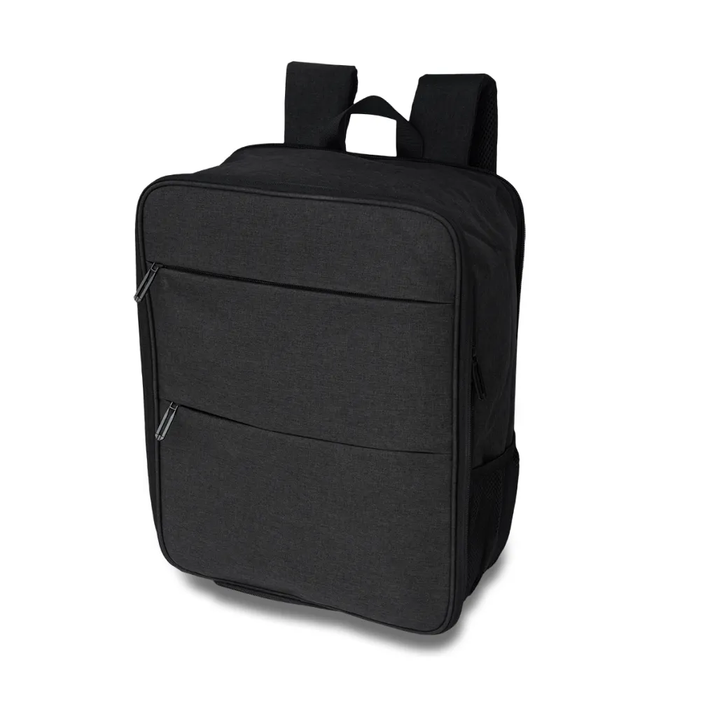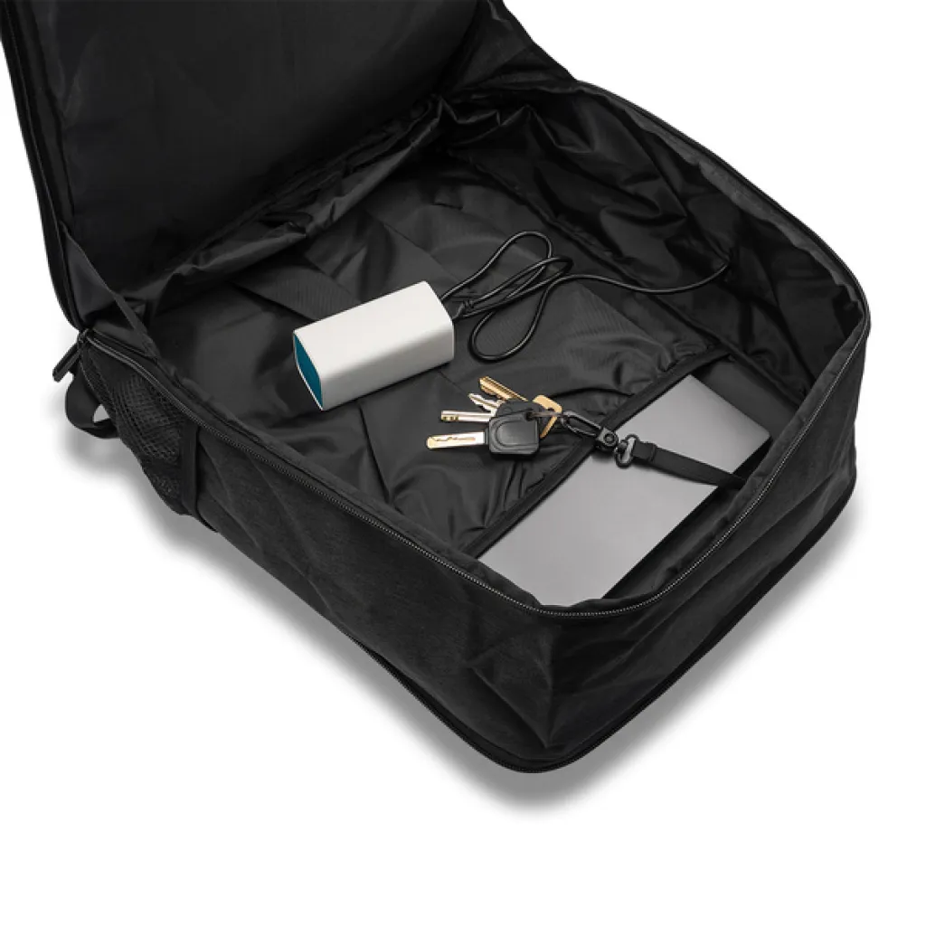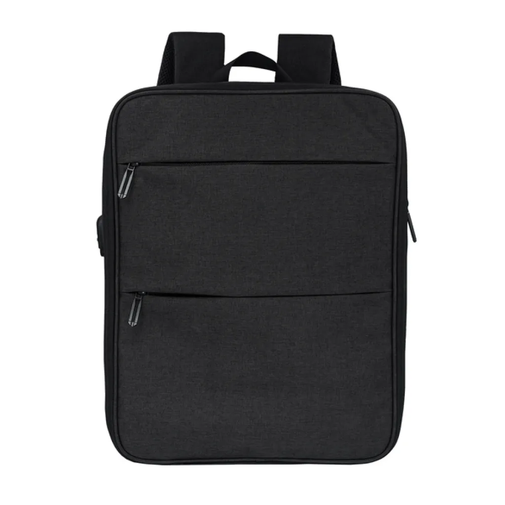 High-quality compact backpack with the possibility of expanding the main compartment. It has a separate, softly padded compartment for a 16 inch laptop. The main compartment is equipped with a USB port and a cable inside the backpack. Inside the main compartment there is also a large pocket for a tablet and a carabiner for keys . The soft and comfortable back and shoulder straps are lined with mesh. There is a strap on the back designed to place the backpack on the suitcase handle. Additionally, the backpack has 1 side pocket and 2 front pockets, both with zippers. Perfect for air travel and more.