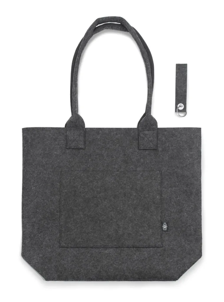 The MARRTO felt bag is functional, lightweight and practical. It can be used as an everyday bag or as a shopping bag. It has comfortable, long handles and a widened bottom, an additional pocket, which makes it very packable. The included felt key ring complements the product nicely. Made from recycled rPET felt.