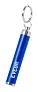 Plastic flashlight with 1 LED and metal keyring. Logos engraved on body are illuminated. Including button cell batteries.