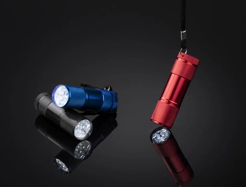 Metal flash light with 9 LED diodes. Logo will be engarved.