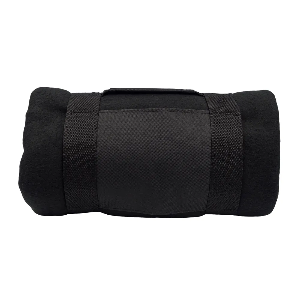 Fleece blanket with a weight of 180 g / m2, machine-sewn, equipped with a handy carrying handle. Size when unfolded: 120 x 150 cm. Perfect for outdoor events.