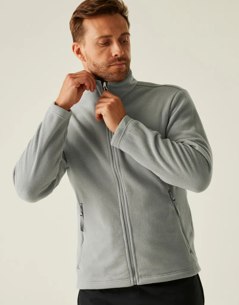 ·250 g/m² ·100% Polyester (Recycled) ·Brushed fleece inside ·Soft touch and quick drying ·Full zip ·Side pockets with zip