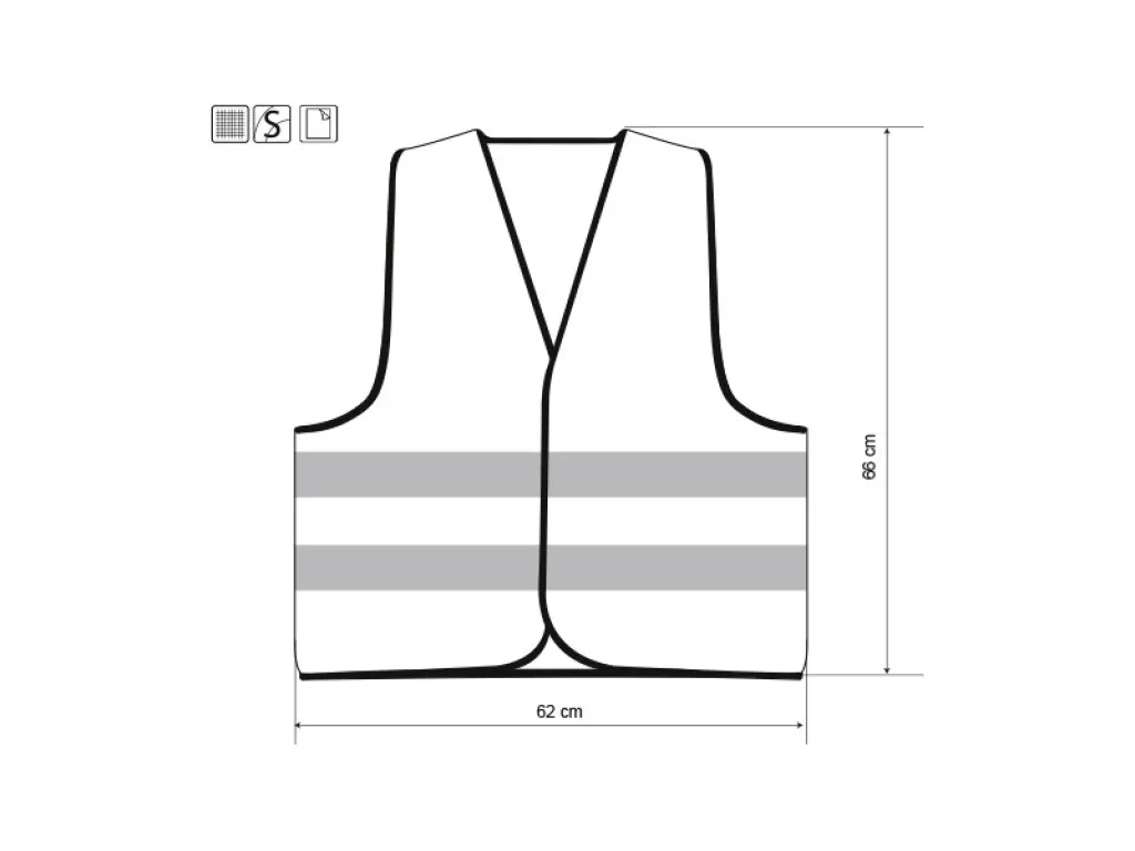 GLOW MESH 59.044.41 Safety vest Safety vest. fluorescent with two reflective tapes on front and two reflective tapes on back Size: one size fits all Standard: EN 20471 Fabric: 100% polyester mesh Packing: 100/1 Recommended print type: screen printing. transfer printing. sublimation
