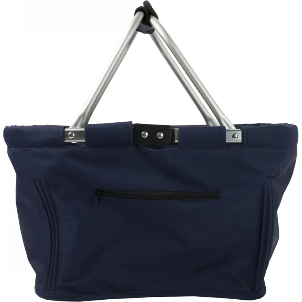 Foldable shopping basket with zipped side pocket and aluminium frame