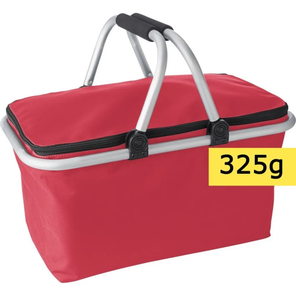 Foldable shopping basket, with aluminium frame and handles with EVA foam grip, zipper closure on top