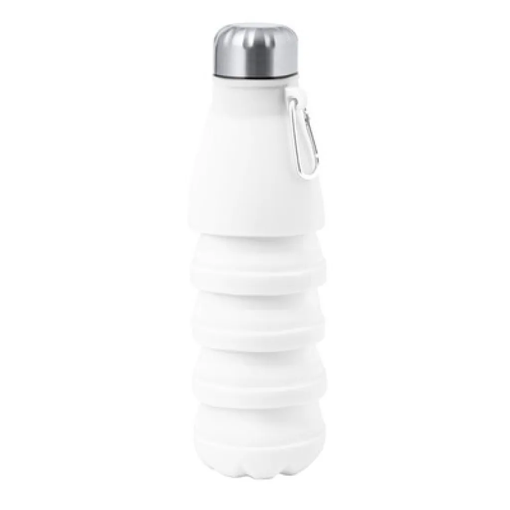 Foldable sports bottle 550 ml with carabiner clip, made of silicone, stainless steel cap, matte finish