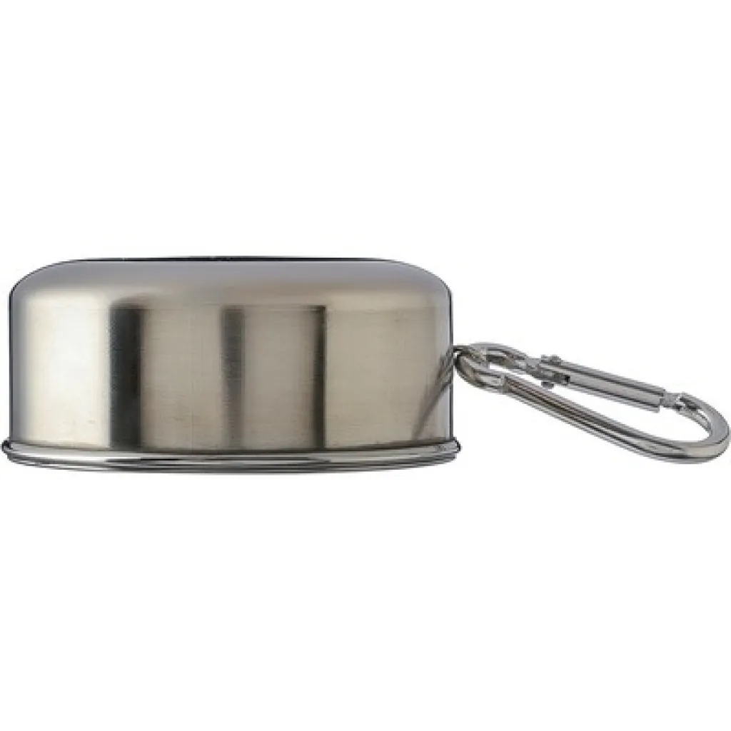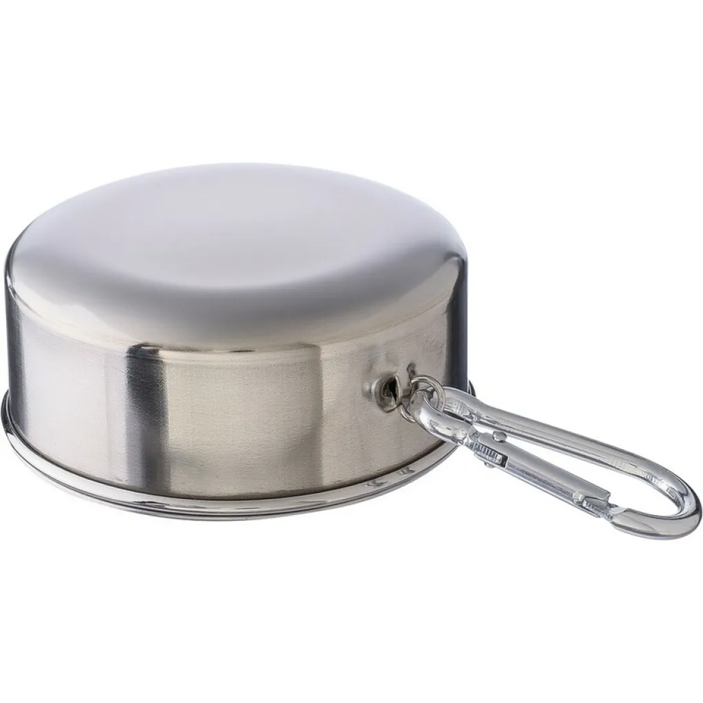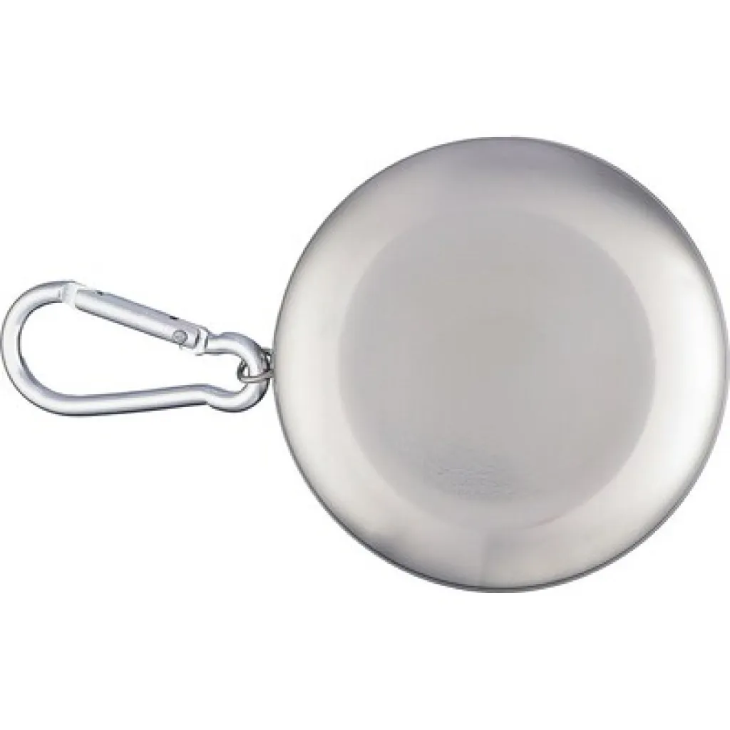 Foldable travel mug 220 ml with carabiner clip for attaching, foldable design makes it easy to pack and carry, packed in brown carton box, product made from stainless steel