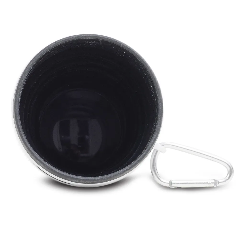 Folding silicone 350 ml cup. When folded, it takes up very little space and can be carried in a jacket pocket, a bag or attached to a backpack. Perfect when buying coffee to go, carrying your own drink when out for a walk. Can also be used in the freezer.