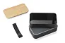 The COUPLE food container is made of plastic, has a bamboo lid and an elastic band to prevent accidental opening. The container consists of two interconnected chambers, placed one below the other, separated by a lid. The container can be used in a dishwasher, microwave oven and freezer.