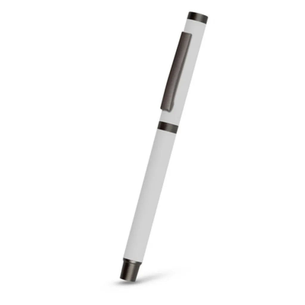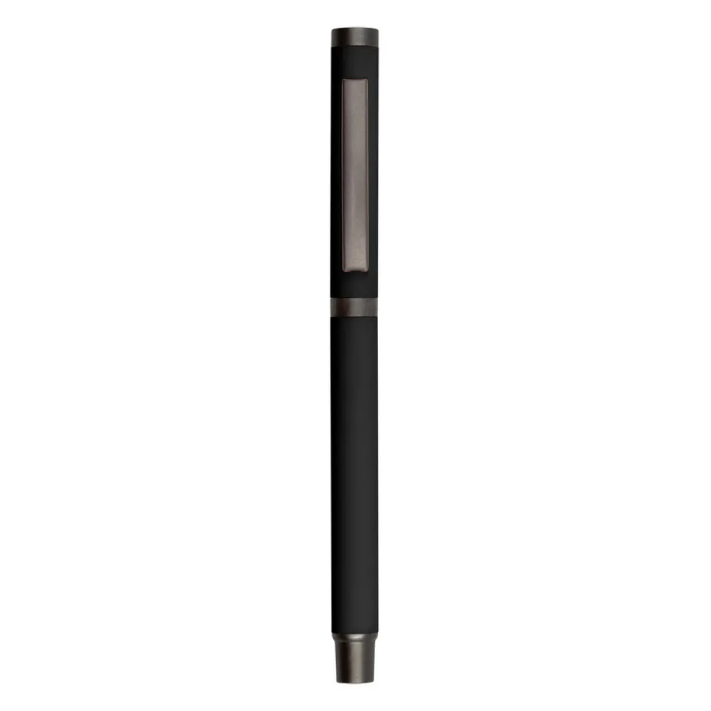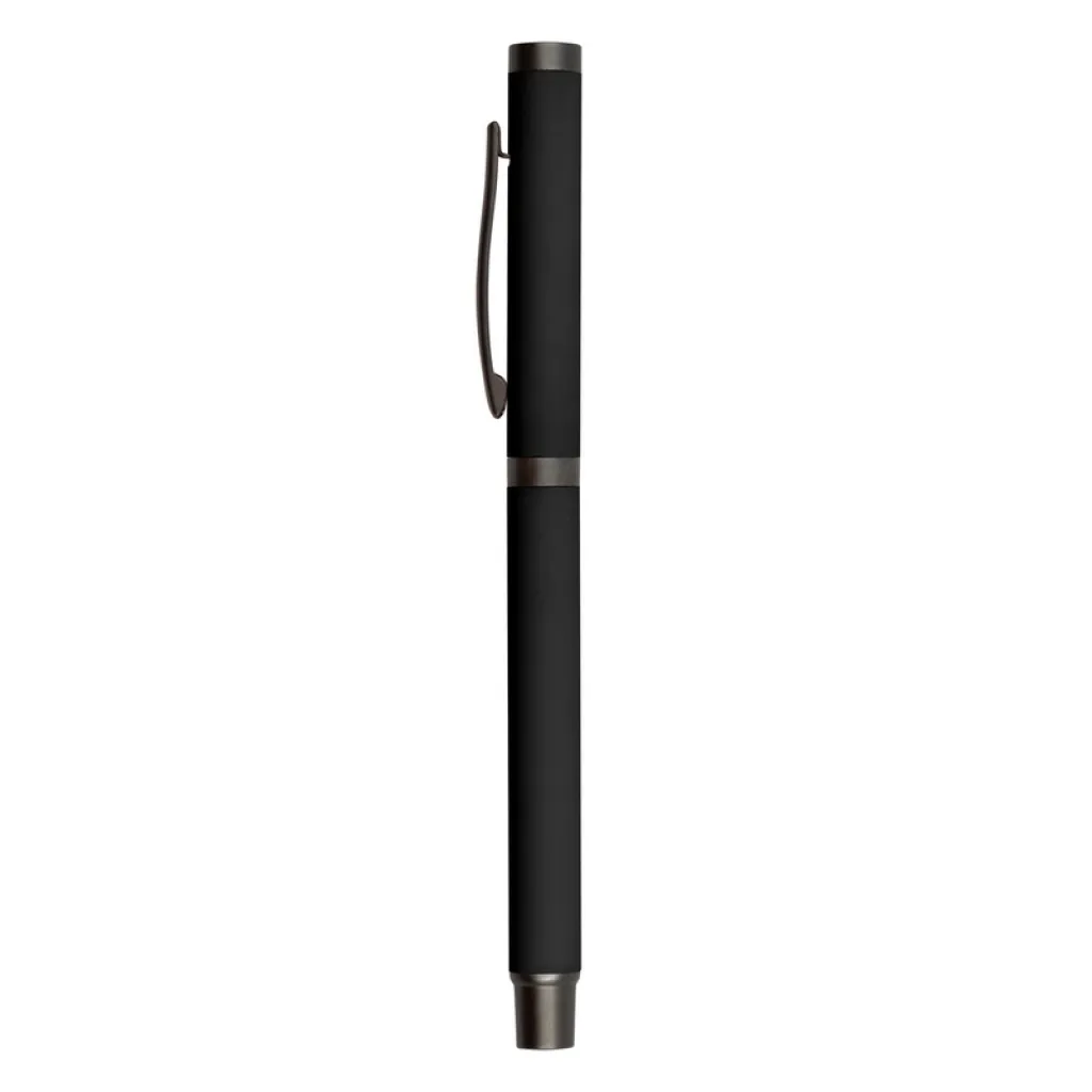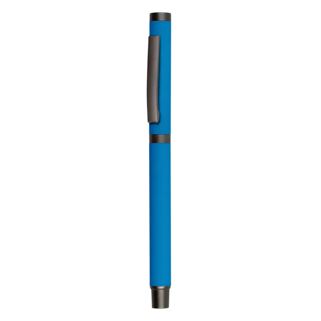 Ball pen with rubber finishing and matching cap with grey clip, gel ink 0.7 mm, writing length cca. 500m.