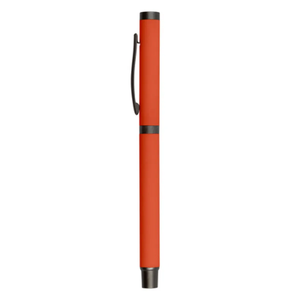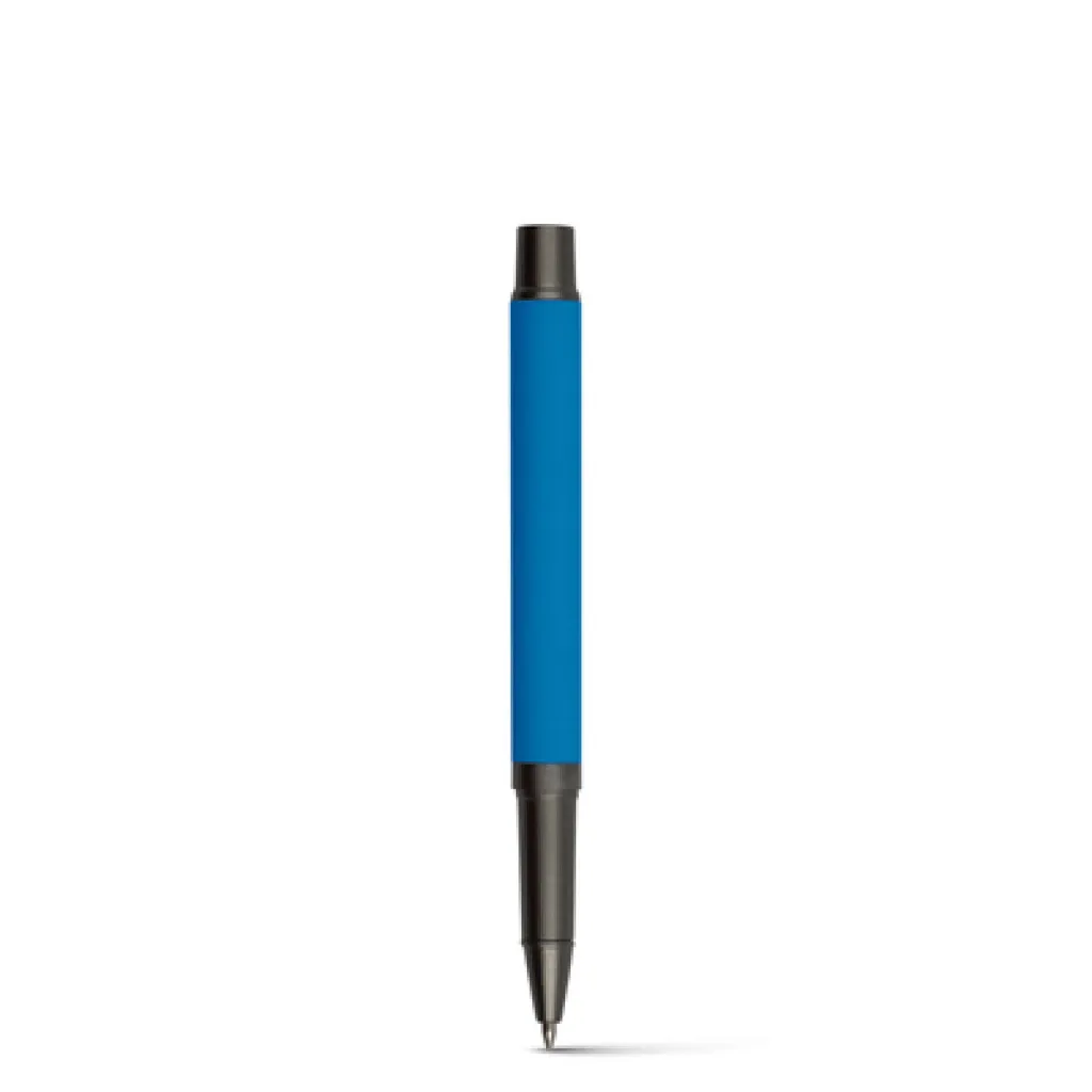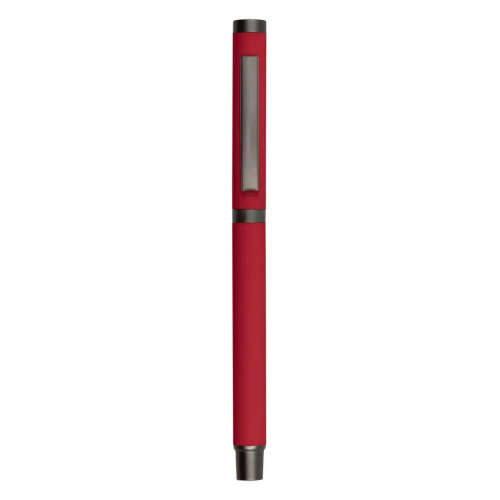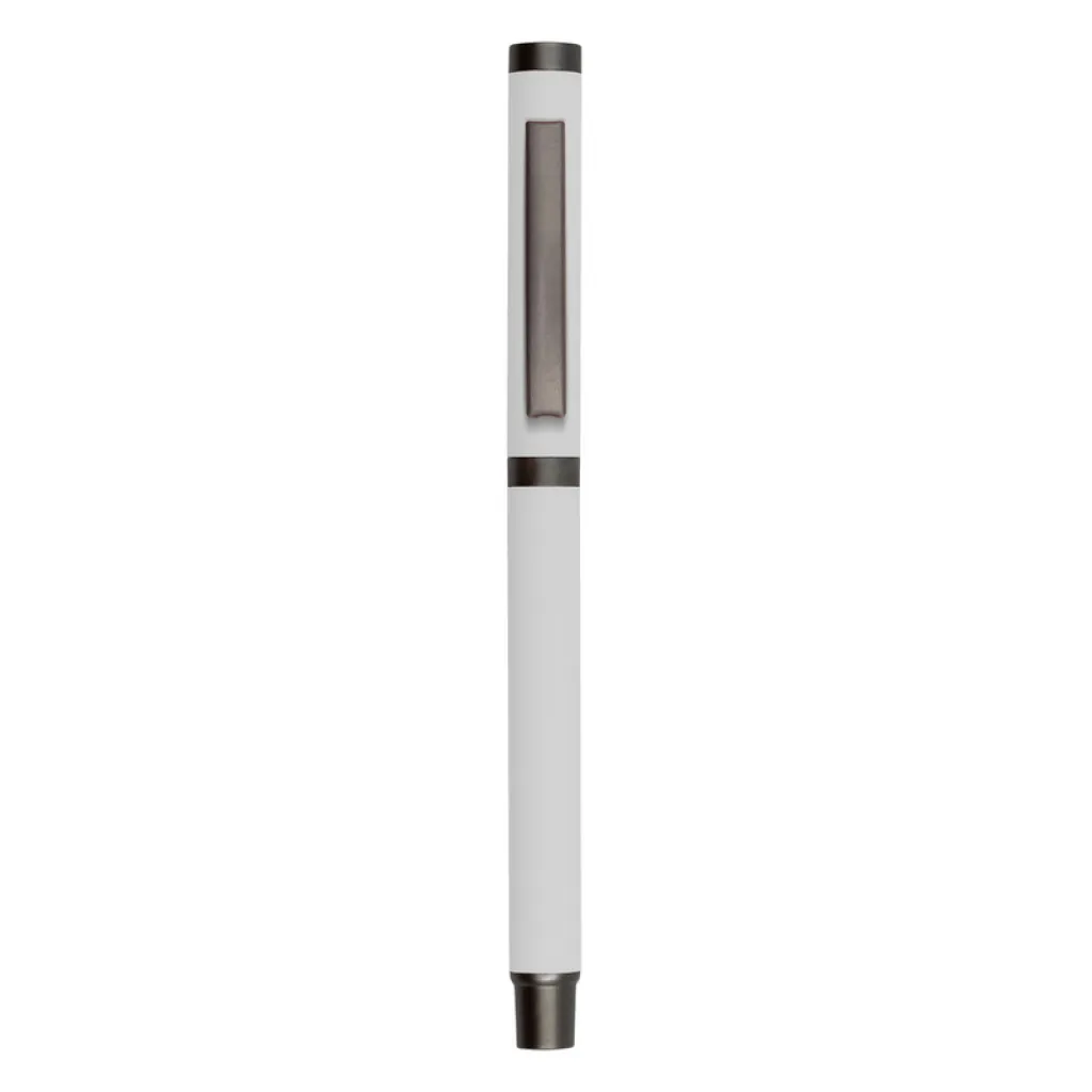Ball pen with rubber finishing and matching cap with grey clip, gel ink 0.7 mm, writing length cca. 500m.