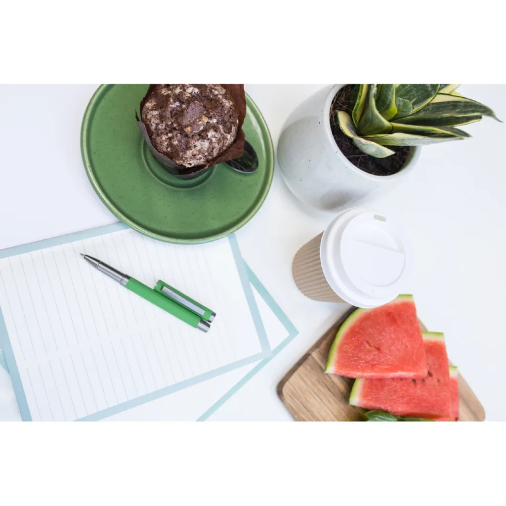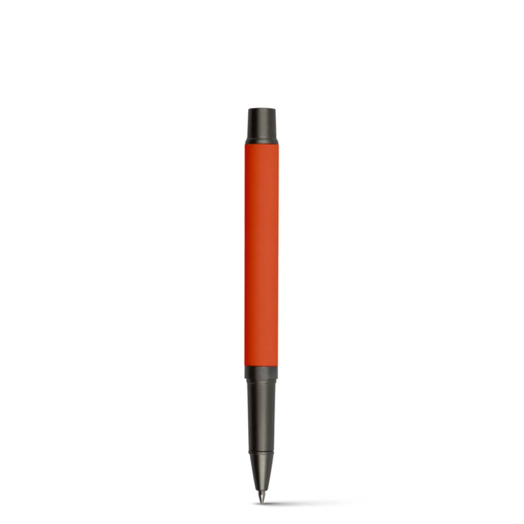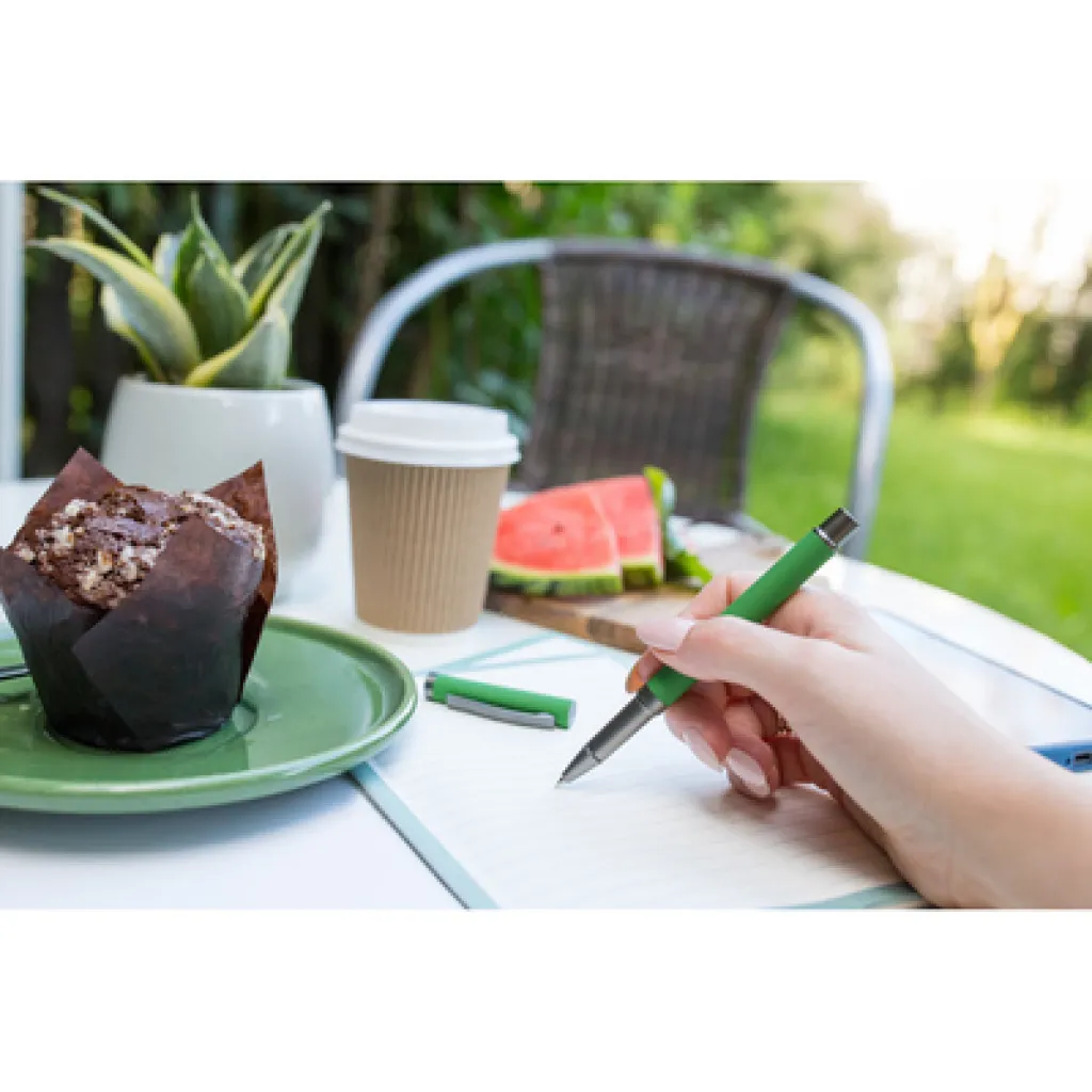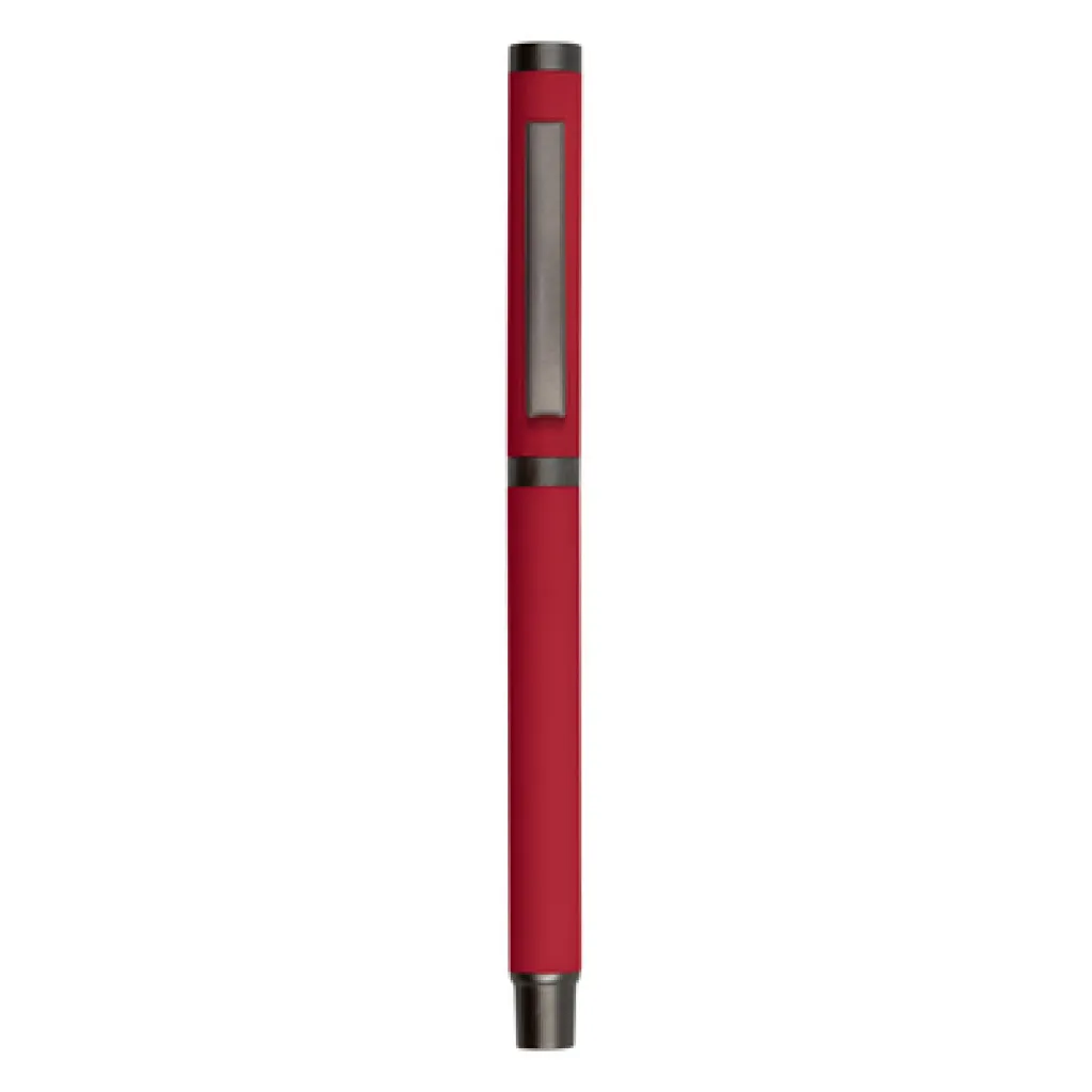 Ball pen with rubber finishing and matching cap with grey clip, gel ink 0.7 mm, writing length cca. 500m.