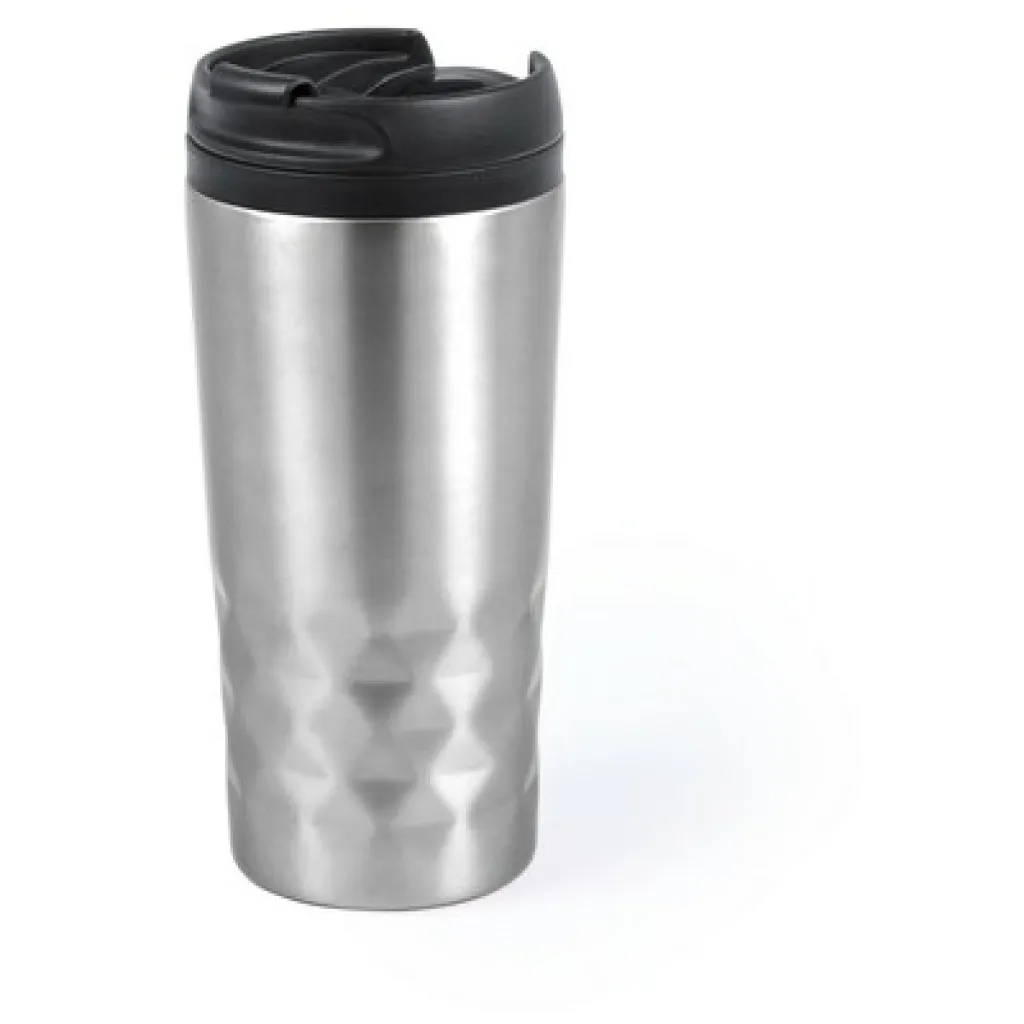 Geometric travel mug 310 ml, stainless steel outside, PP inside, thermal insulation scale: 1