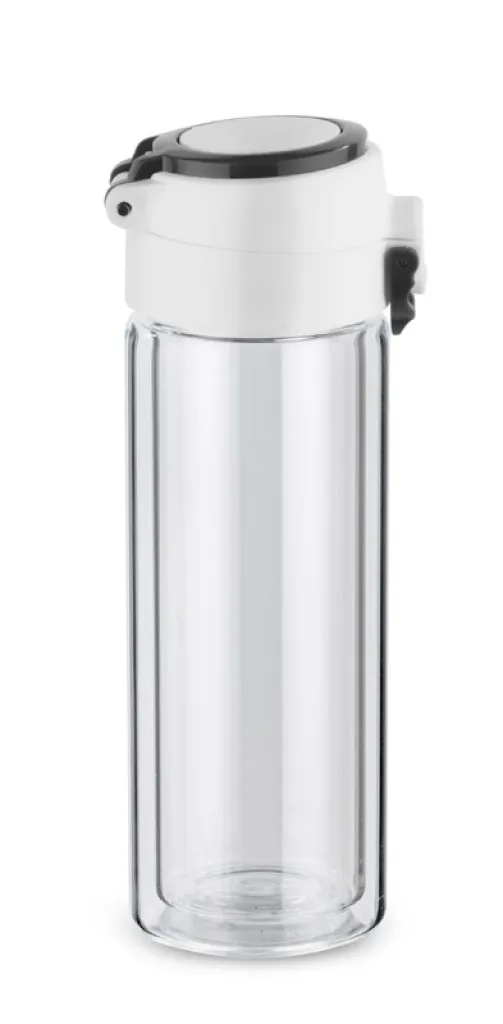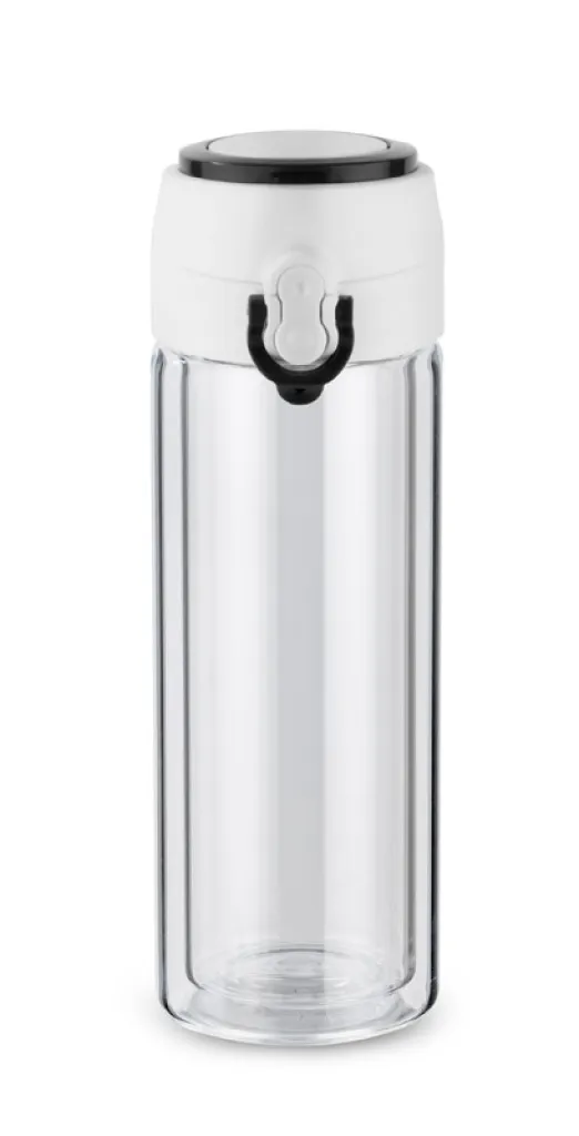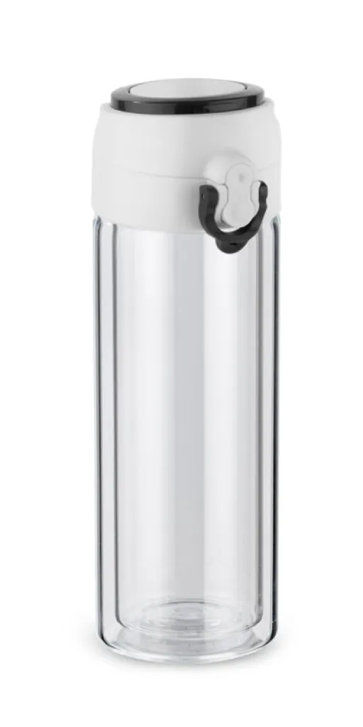 The VAKO water bottle is made of high quality glass – borosilicate glass. Double walls provide additional insulation and longer period of keeping temperature. A tight seal prevents leaks and a colourful handle makes handling easy.