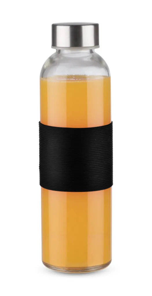 The GLASSI 520 ml bottle is an environmentally friendly alternative to plastic bottles. It is made of glass, thanks to which it is not only ecological, but also does not change the taste of beverages. A silicone strap in various colours makes it easy to hold, prevents burns and slipping of the bottle from hand. It is also a distinctive feature of the bottle. The bottle is suitable for beverages with a maximum temperature of 60 ° C.