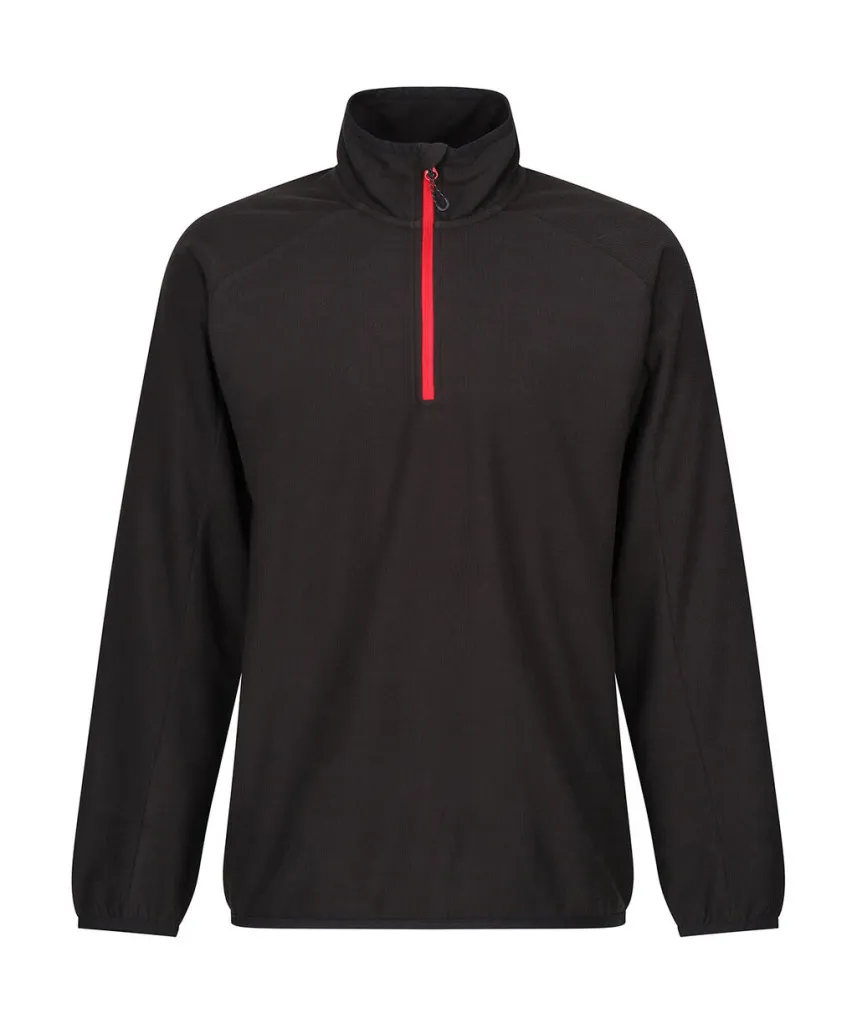 ·180 g/m² ·100% Polyester (Recycled, mini grid fleece) ·Fabric made from at least 30% recycled materials ·Stand-up collar ·Contrast zip detail ·Quarter zip with chin guard ·Raglan sleeves ·Stretch binding to collar, cuffs and hem.