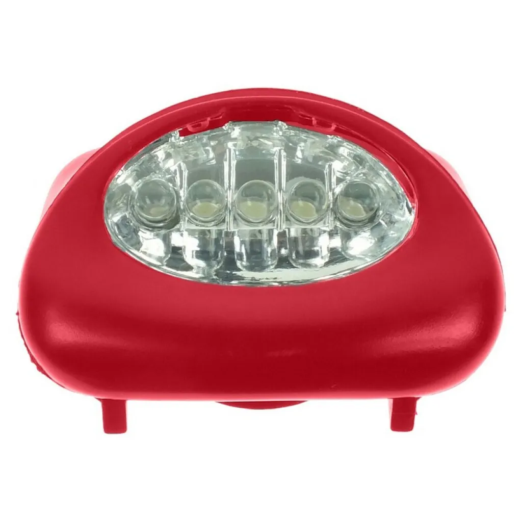 Head torch with 5 LED lights in plastic casing and strap for head adjustment
