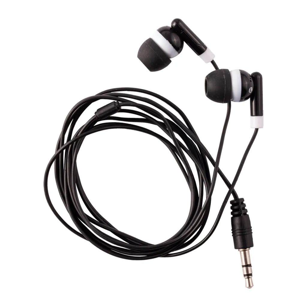 Earphones in plastic case. Impedance: 32Ω +/-15%; Sensitivity: 105+/-6dB; Frequency respond: 20Hz ~ 20KHz; Rated Input Power: 2.5mW; Maximum Input Power: 5mW; Cord Length: 1.2m; Plug: 3.5 mm diameter