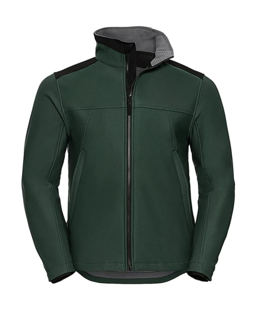 ·400 g/m² ·Outer: 96% Polyester, 4% Elastane, durable water resistant Du PontTM Teflon® coating ·Mid: breathable, waterproof membrane ·Lining: 100% polyester (microfleece with grid texture) ·Breathable (5000 g/m² in 24 h), wind- and waterproof (5000 mm) ·Sturdy YKK vislon front zip with pull cord, inner storm flap and zip guard at collar ·One piece shoulder panel, no shoulder seam ·Ergonomic fit with articulated elbows ·Cuffs with internal stretch insert ·Adjustable drawcord in hem, extended back.
