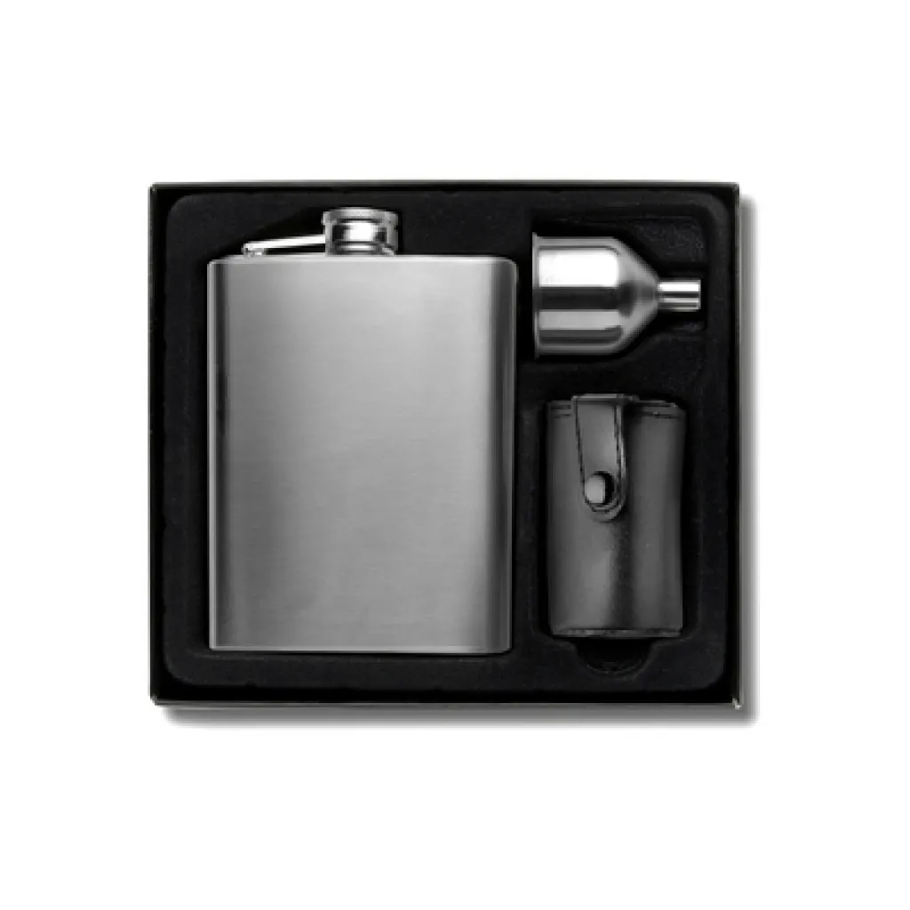 Hip flask 220 ml, cups 30 ml, funnel