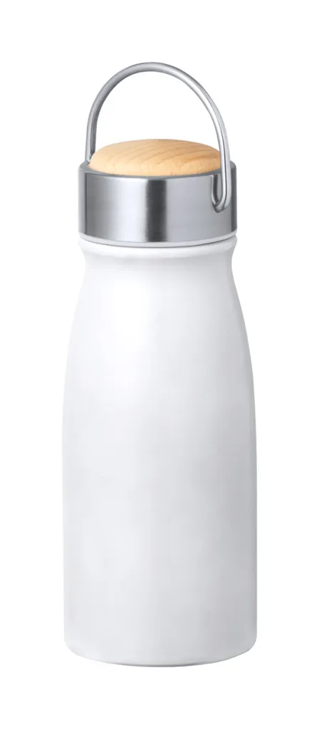 Double-wall, recycled stainless steel vacuum insulated bottle with wooden carry lid, 350 ml.