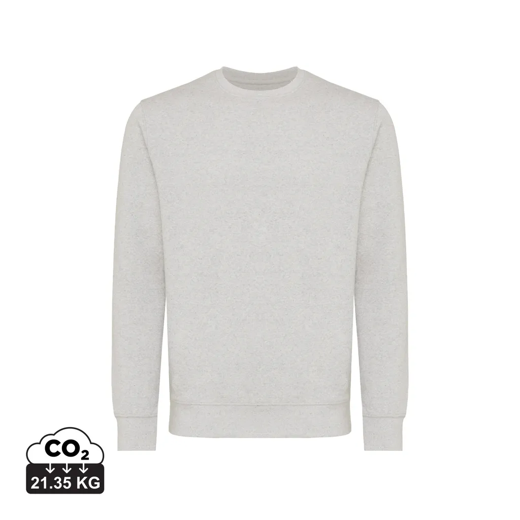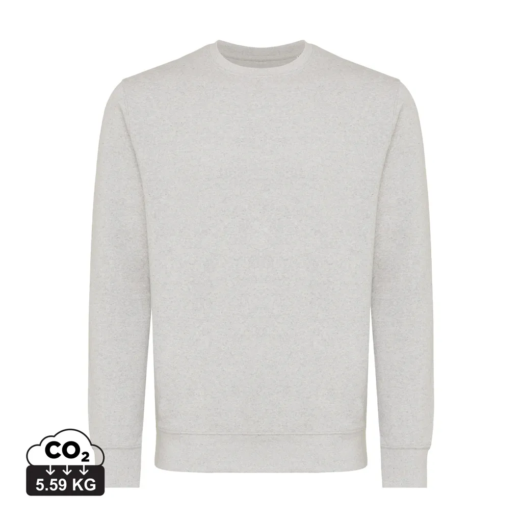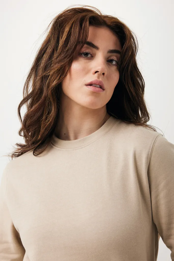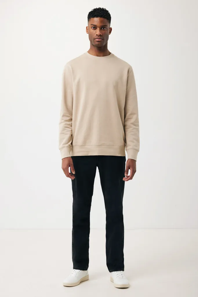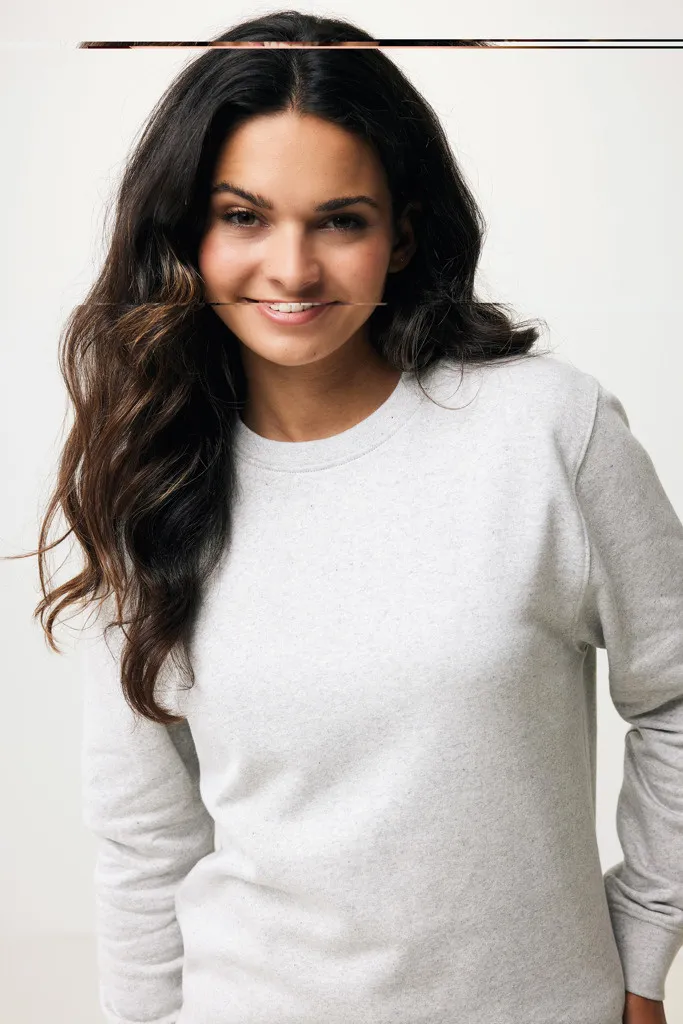 Unisex modern fit crew neck made from 100% cotton, of which 70% organic and 30% recycled, 280 G/M². The crewneck has long sleeves and 1x1 rib at neckline, cuffs and bottom hem. The inside is soft-brushed fleece for extra comfort. The use of genuine recycled & organic fabric materials and environmental impact claims are guaranteed, by using the AWARE™ disruptive physical tracer and blockchain technology. By scanning the QR code, you will gain access to a dedicated digital passport of the product. 2% of proceeds of each sold product will be donated to Water.org. This product is OEKO-TEX® STANDARD 100 2303045 Centexbel certified. Due to the nature of recycled yarns, impurities and color variations may appear.
